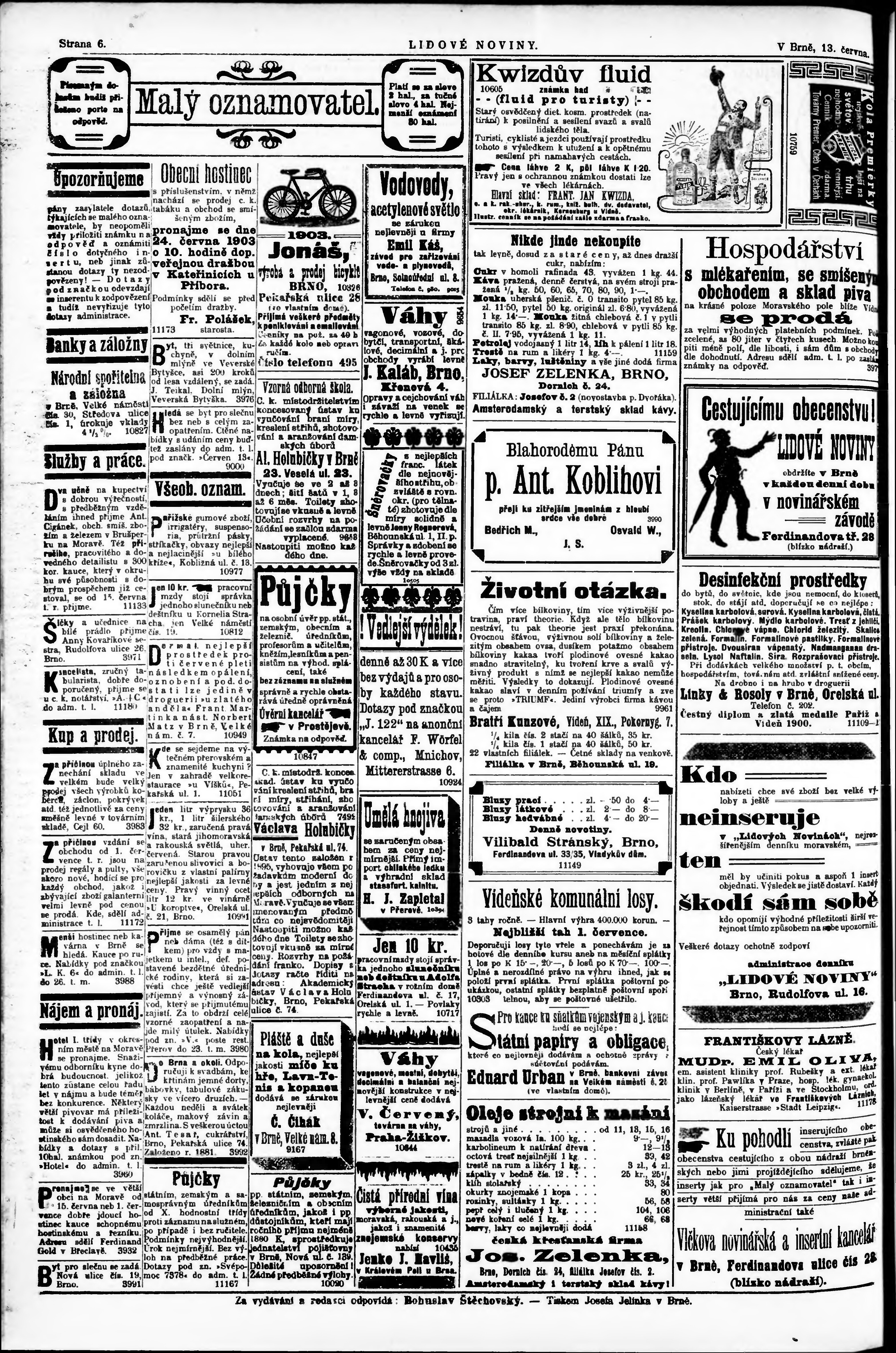 * Datum vydání výtisku: 13.6.1903 Číslo výtisku: 133