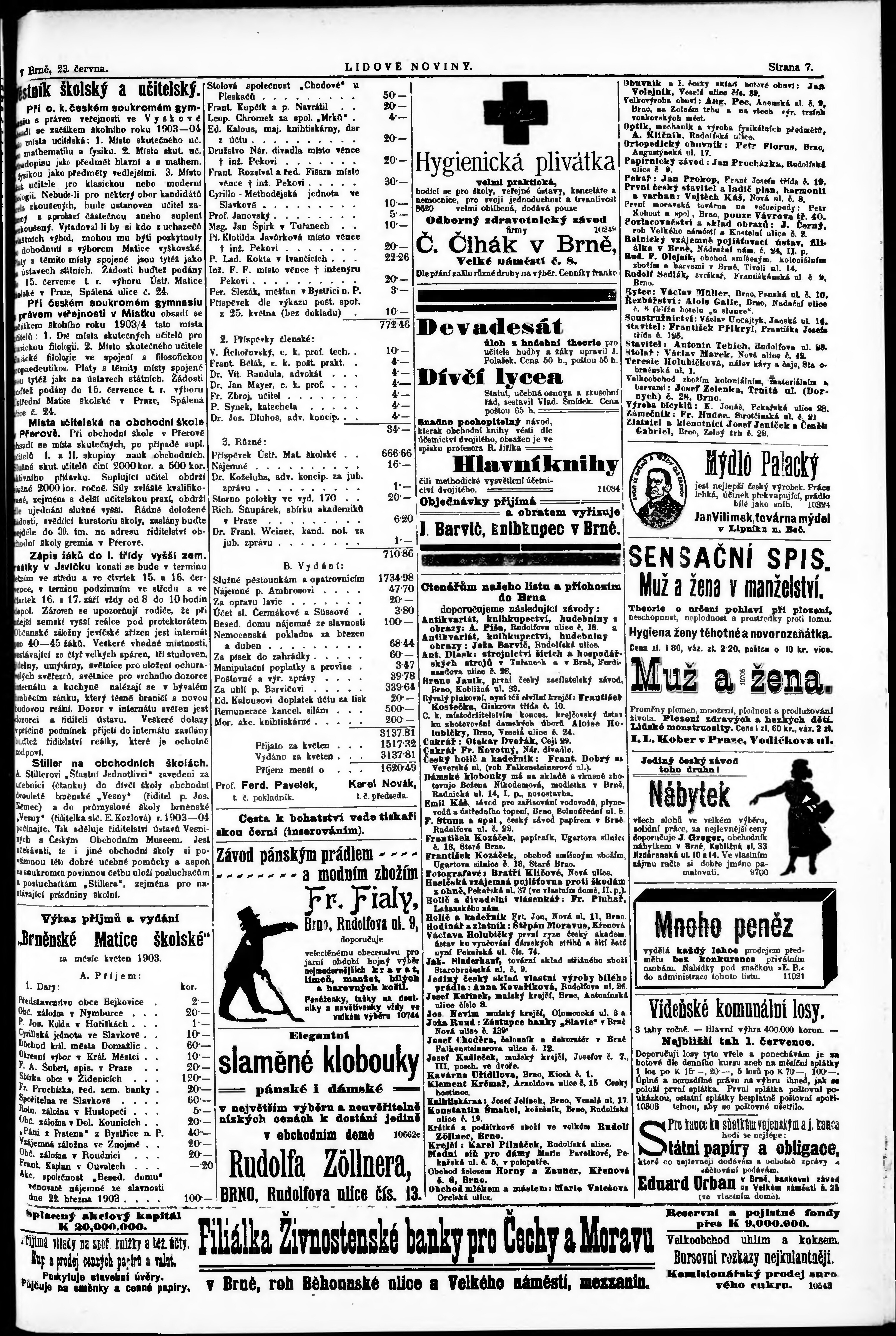 * Datum vydání výtisku: 23.6.1903 Číslo výtisku: 141