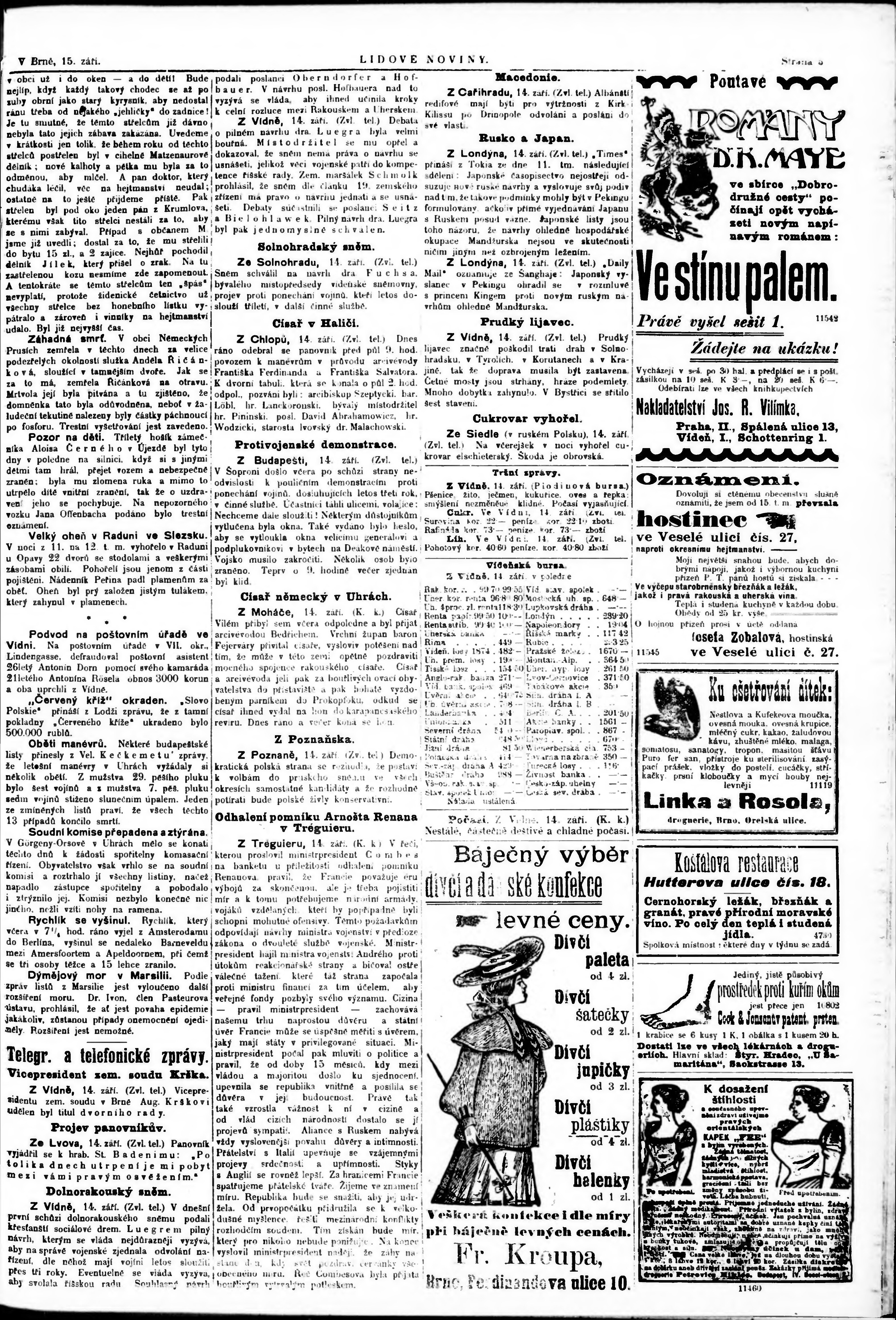 * Datum vydání výtisku: 15.9.1903 Číslo výtisku: 210