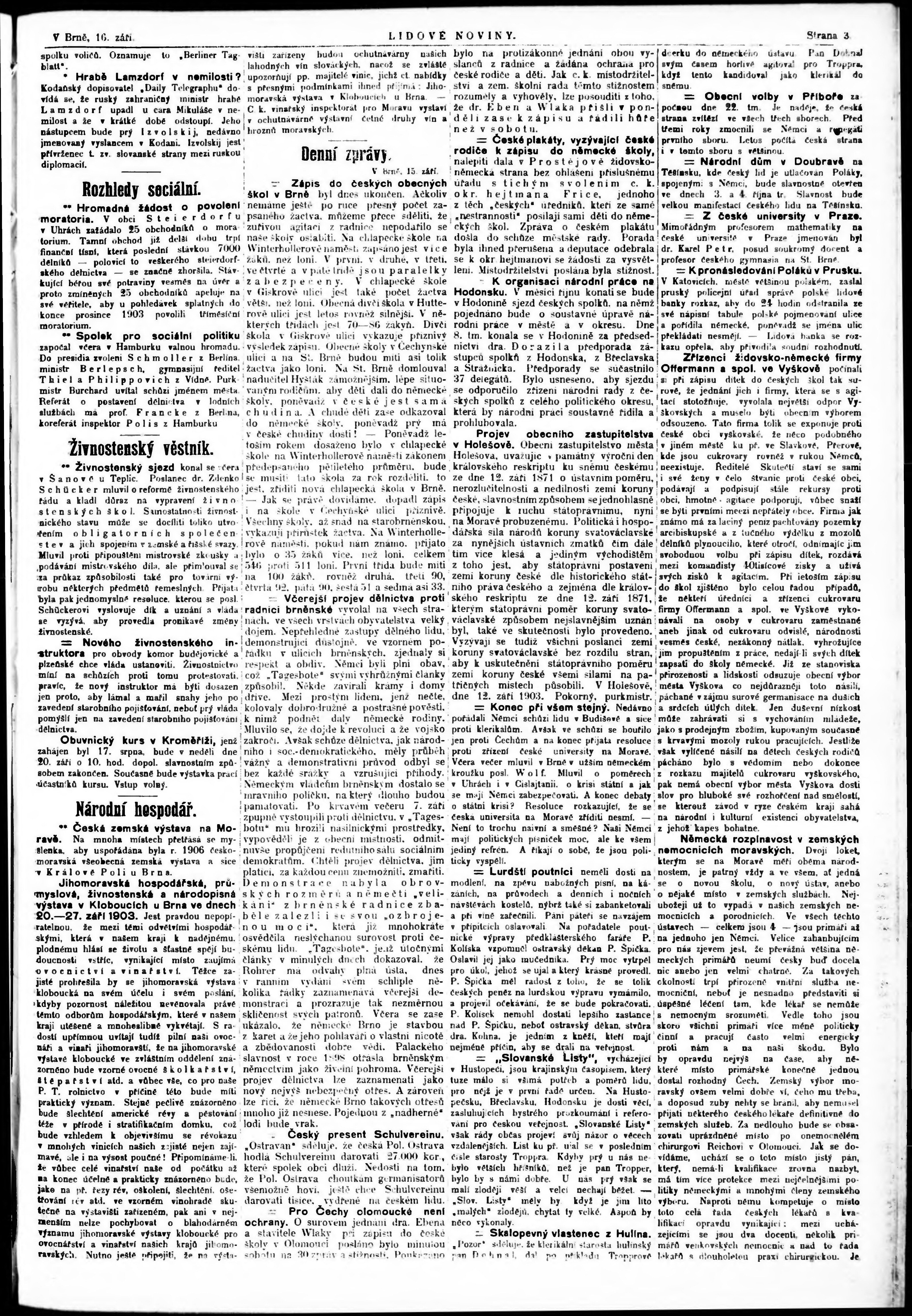 * Datum vydání výtisku: 16.9.1903 Číslo výtisku: 211
