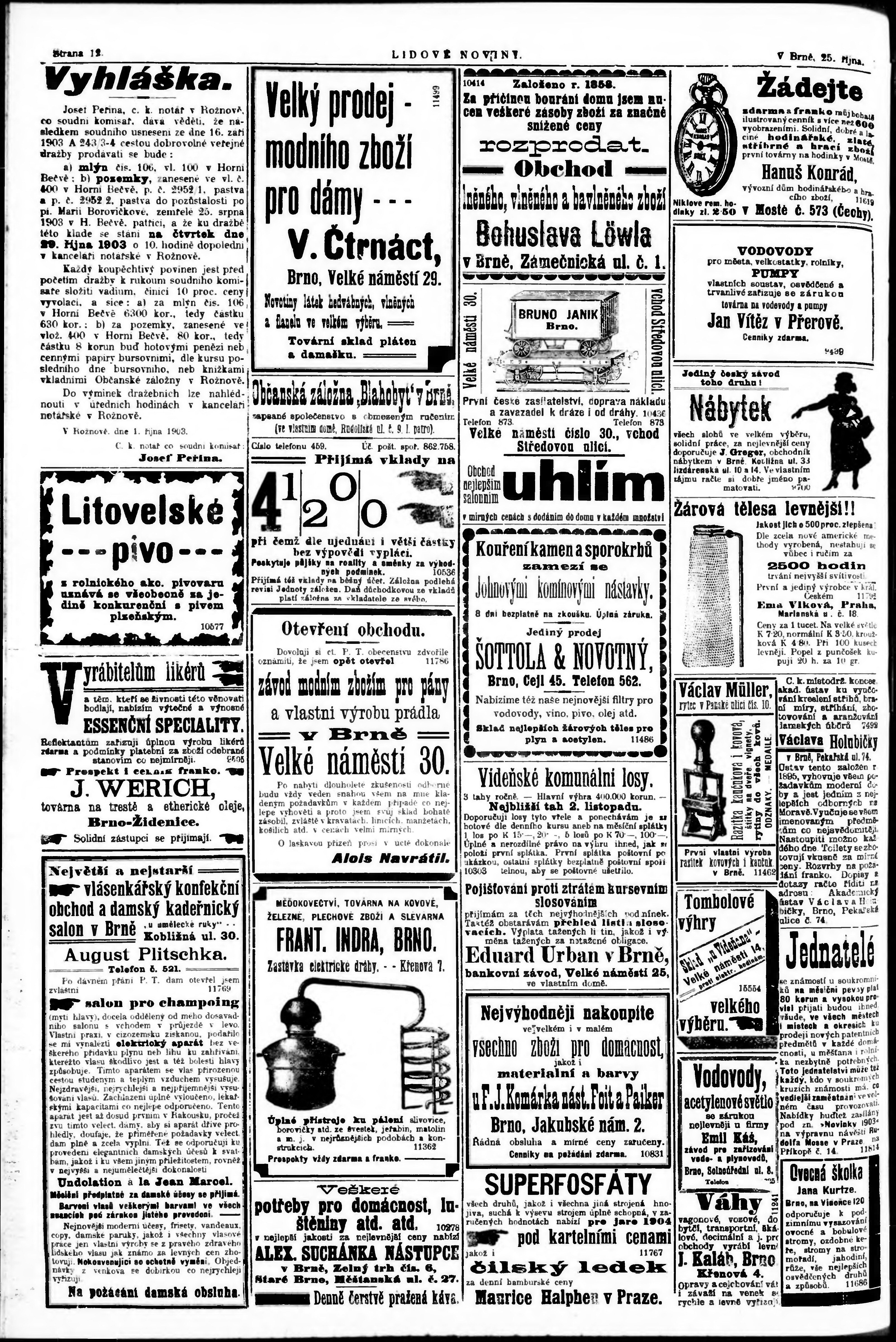 * Datum vydání výtisku: 25.10.1903 Číslo výtisku: 245