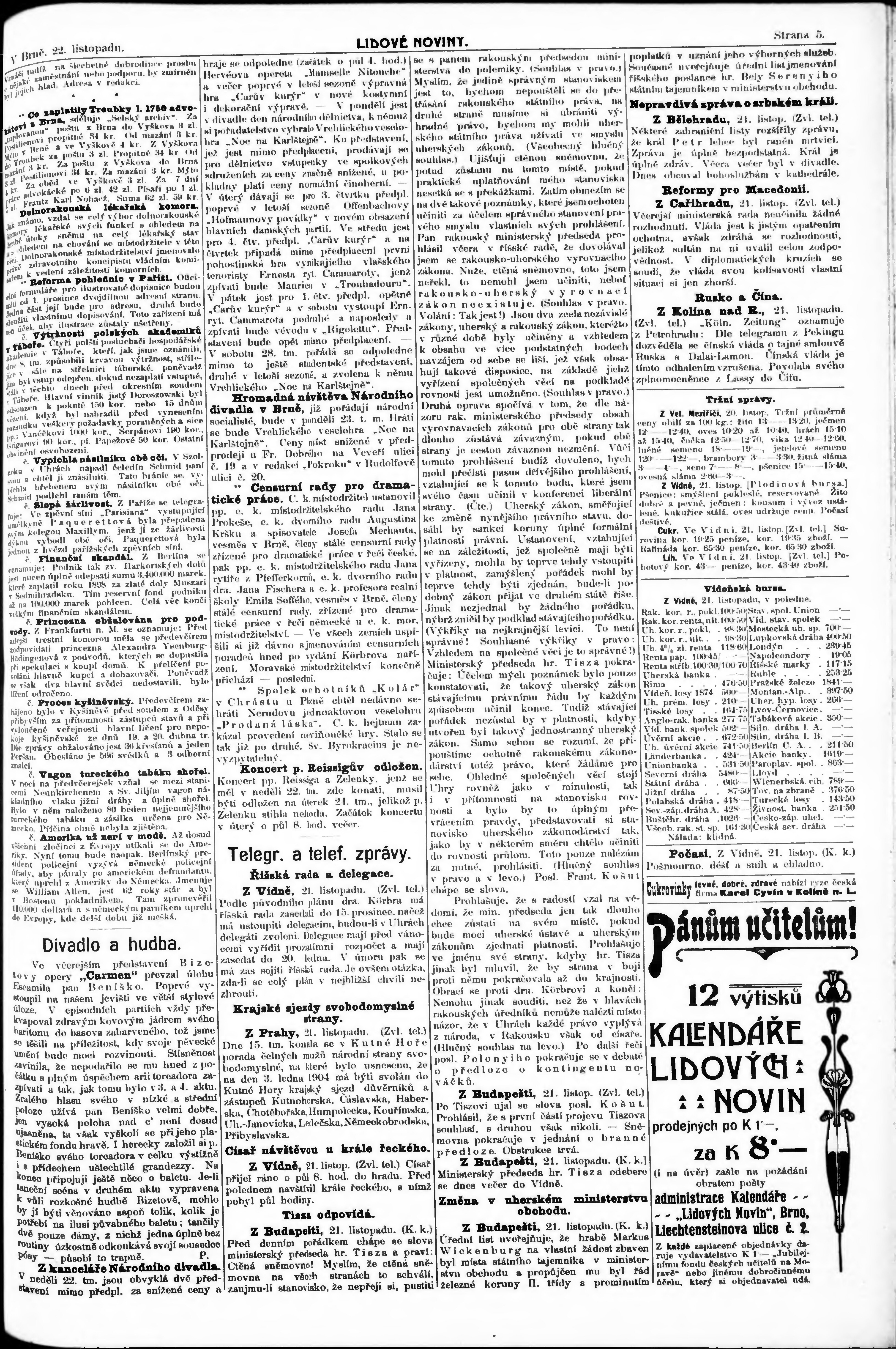 * Datum vydání výtisku: 22.11.1903 Číslo výtisku: 269