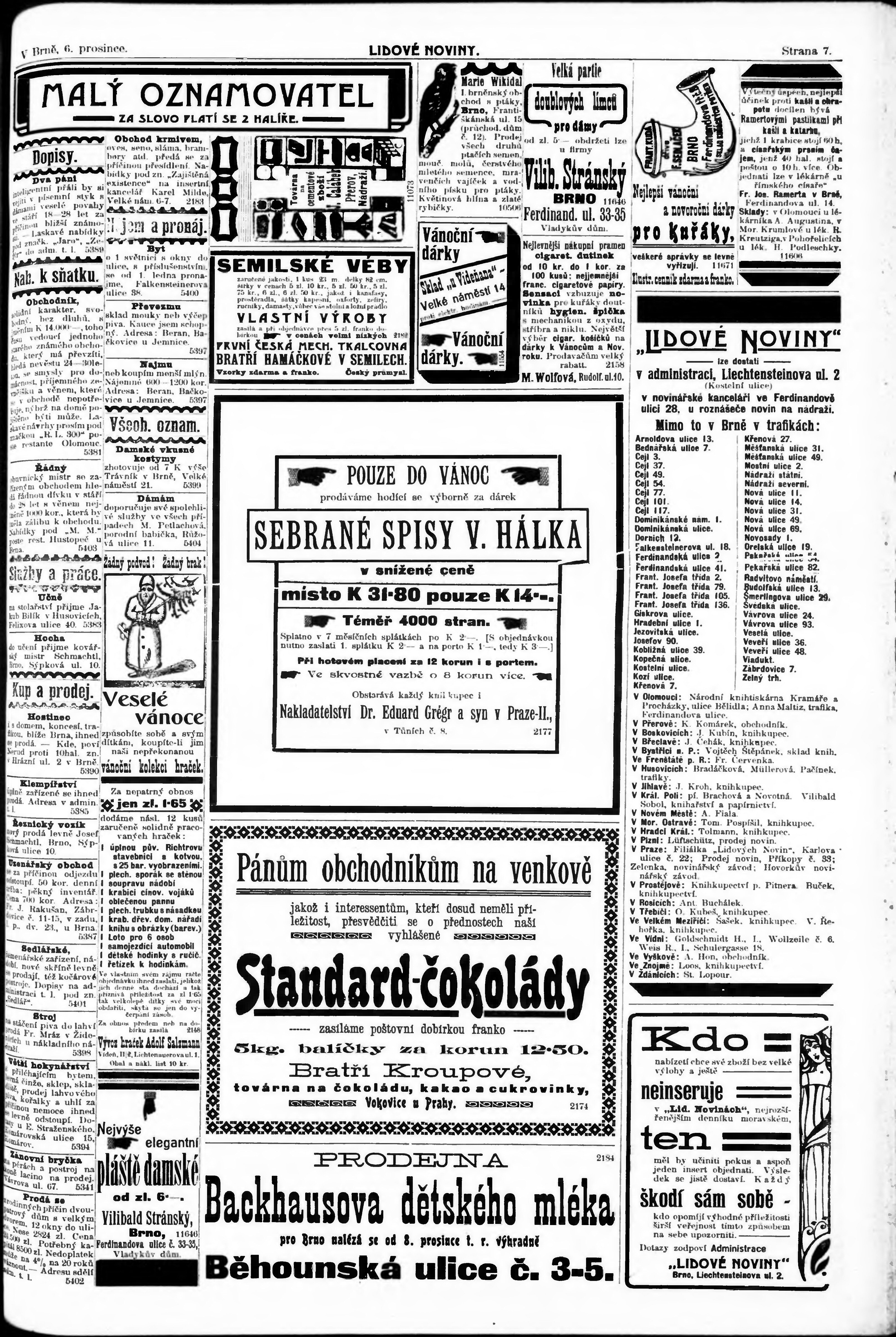 * Datum vydání výtisku: 6.12.1903 Číslo výtisku: 281 Poznámky k výtisku: s. 5 poškozená předloha;