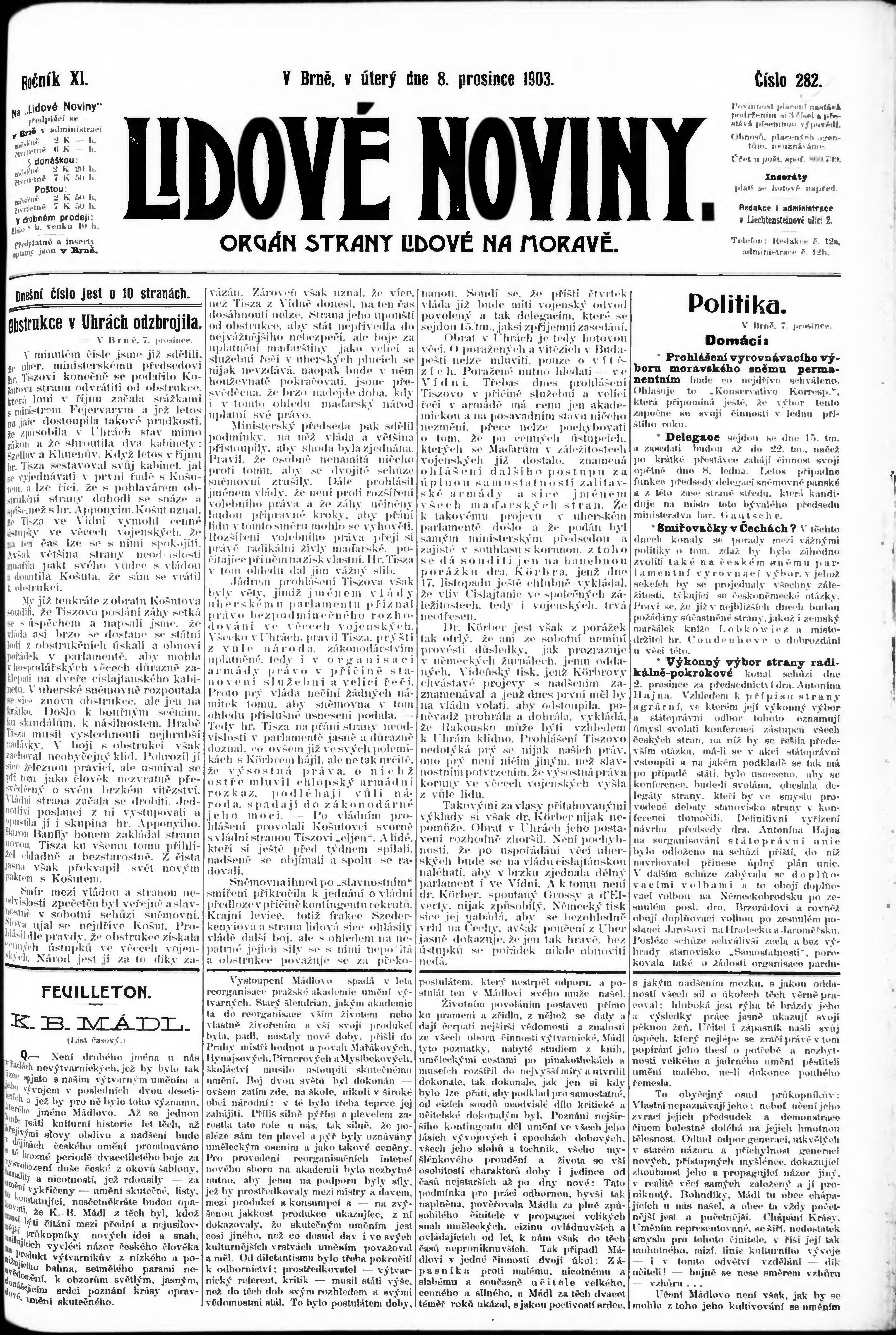 * Datum vydání výtisku: 8.12.1903 Číslo výtisku: 282