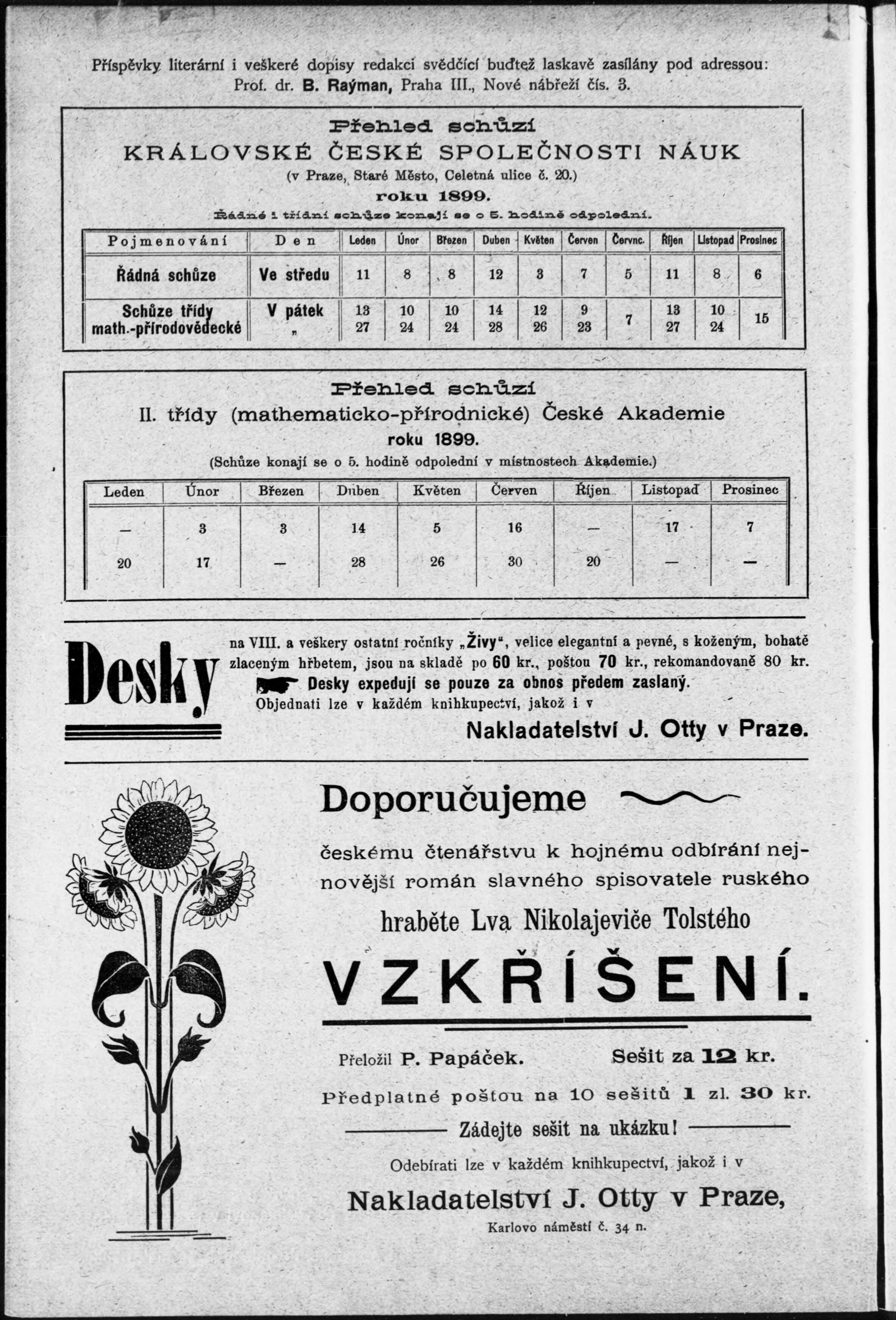 * Datum vydání ročníku: 1899 Číslo ročníku: 9