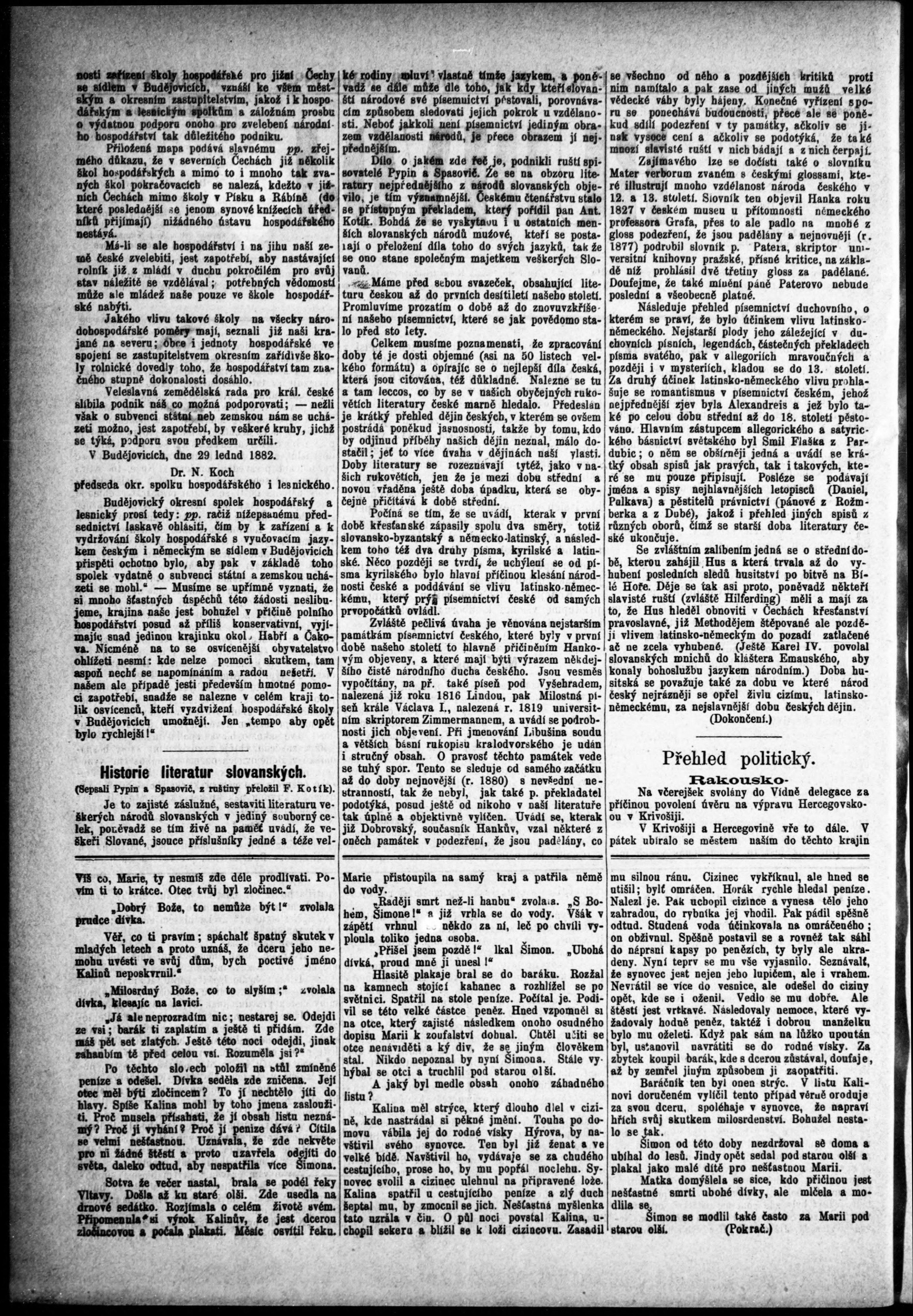 * Datum vydání výtisku: 29.1.1882 Číslo výtisku: 9