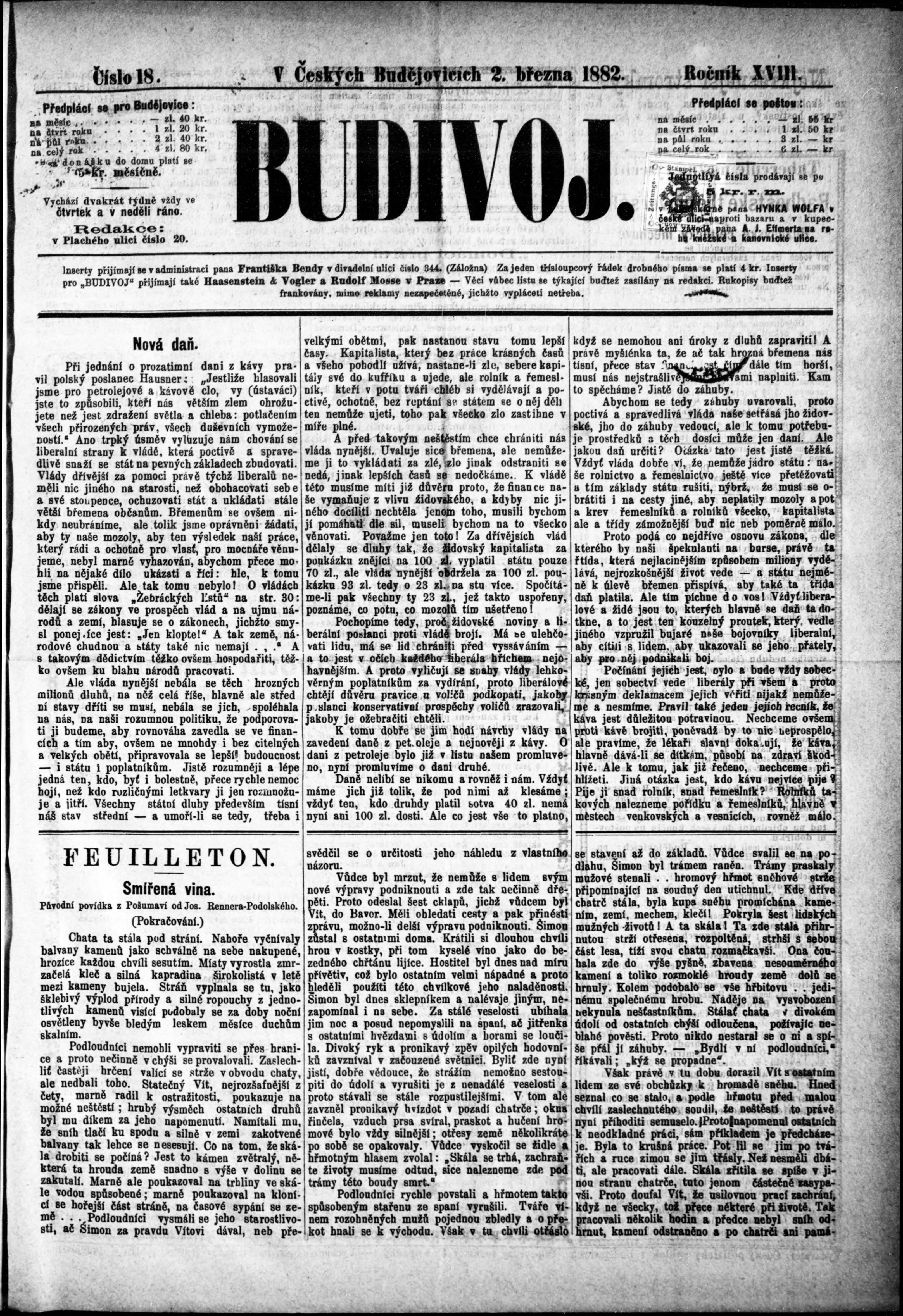 * Datum vydání výtisku: 2.3.1882 Číslo výtisku: 18 Poznámky k výtisku: s. (1) nekvalitní předloha;