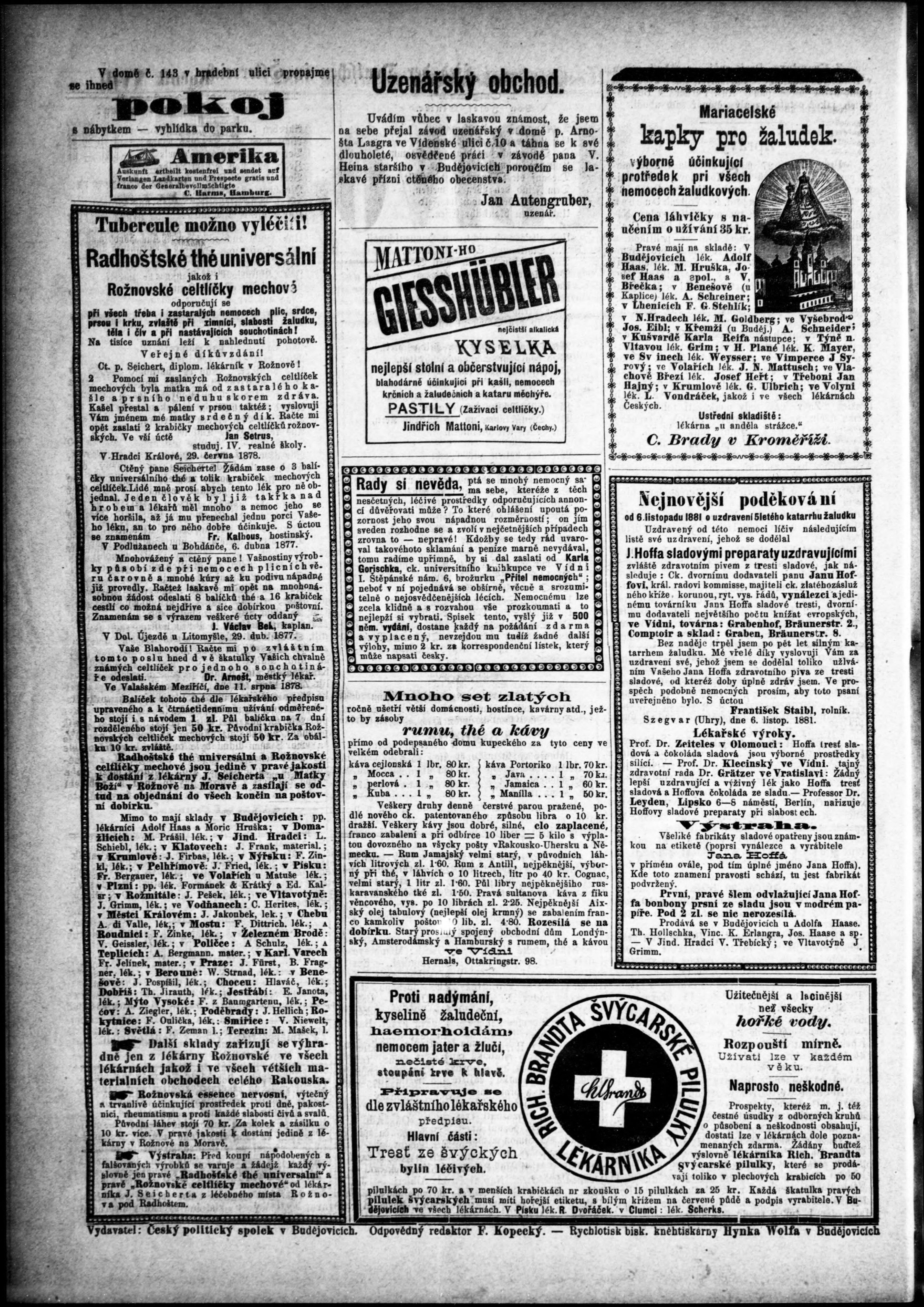 * Datum vydání výtisku: 5.3.1882 Číslo výtisku: 19 Poznámky k výtisku: s. (1) nekvalitní předloha;