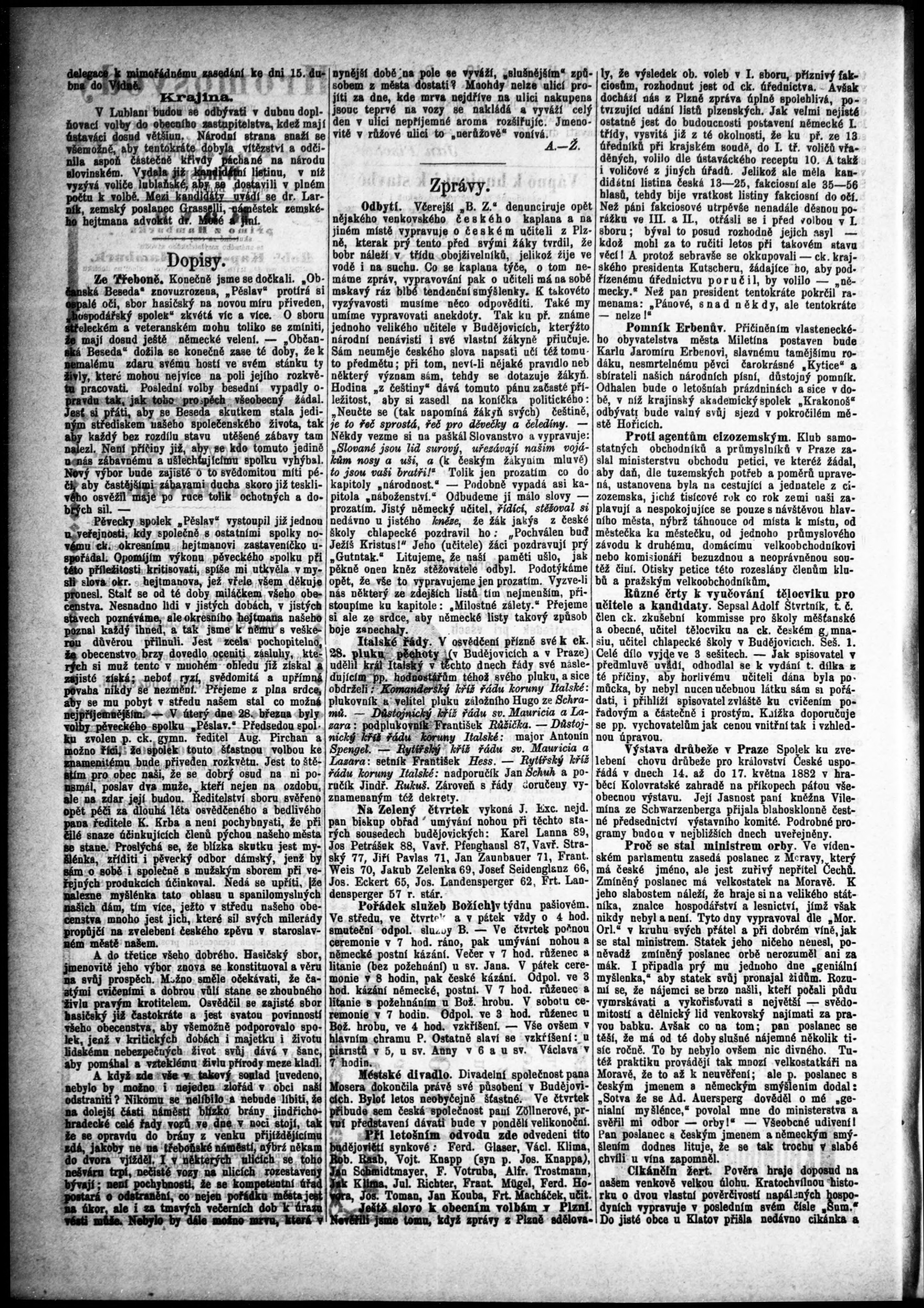 * Datum vydání výtisku: 2.4.1882 Číslo výtisku: 27 Poznámky k výtisku: s. (2) nekvalitní předloha;