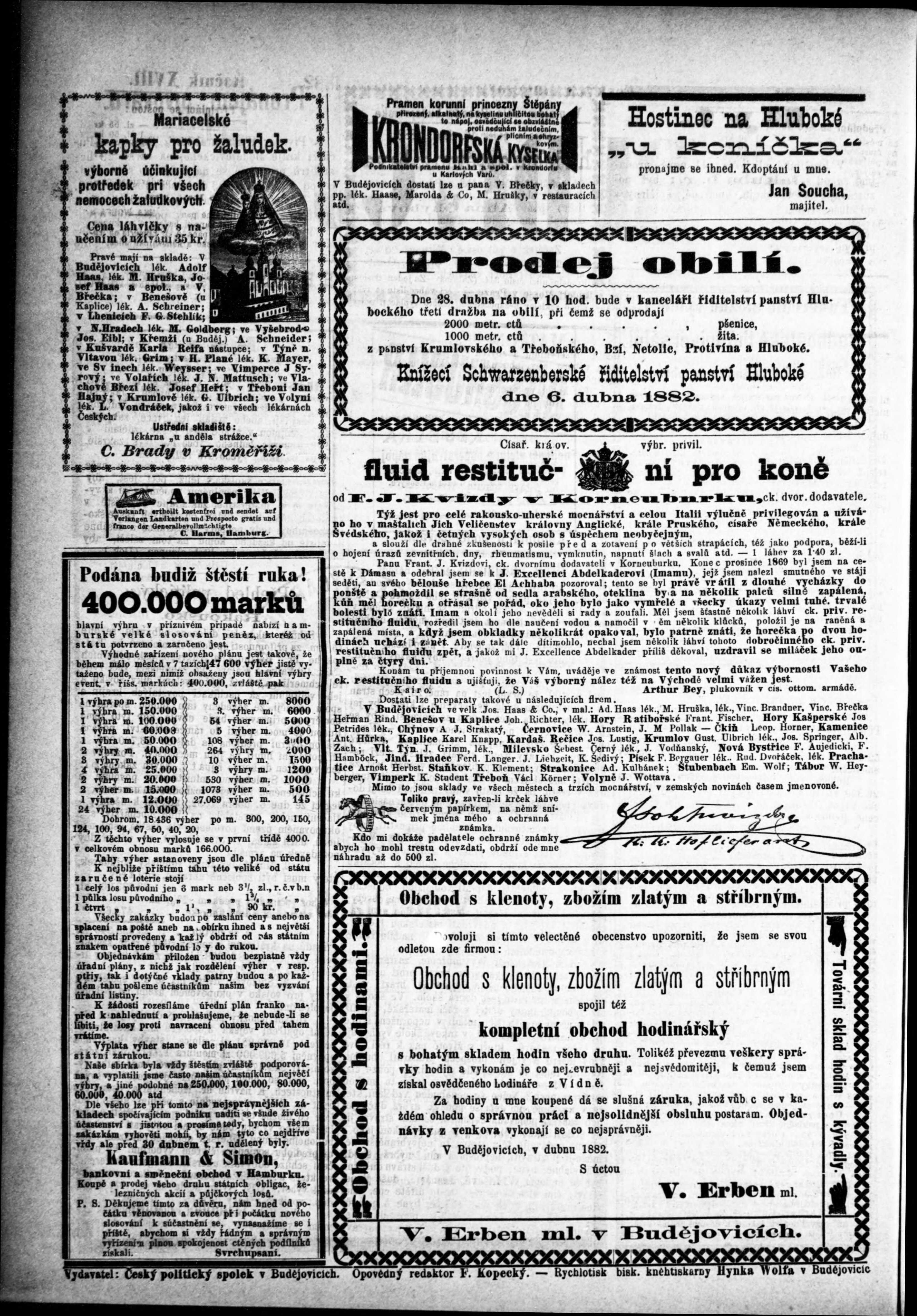 * Datum vydání výtisku: 16.4.1882 Číslo výtisku: 31 Typ výtisku: příloha