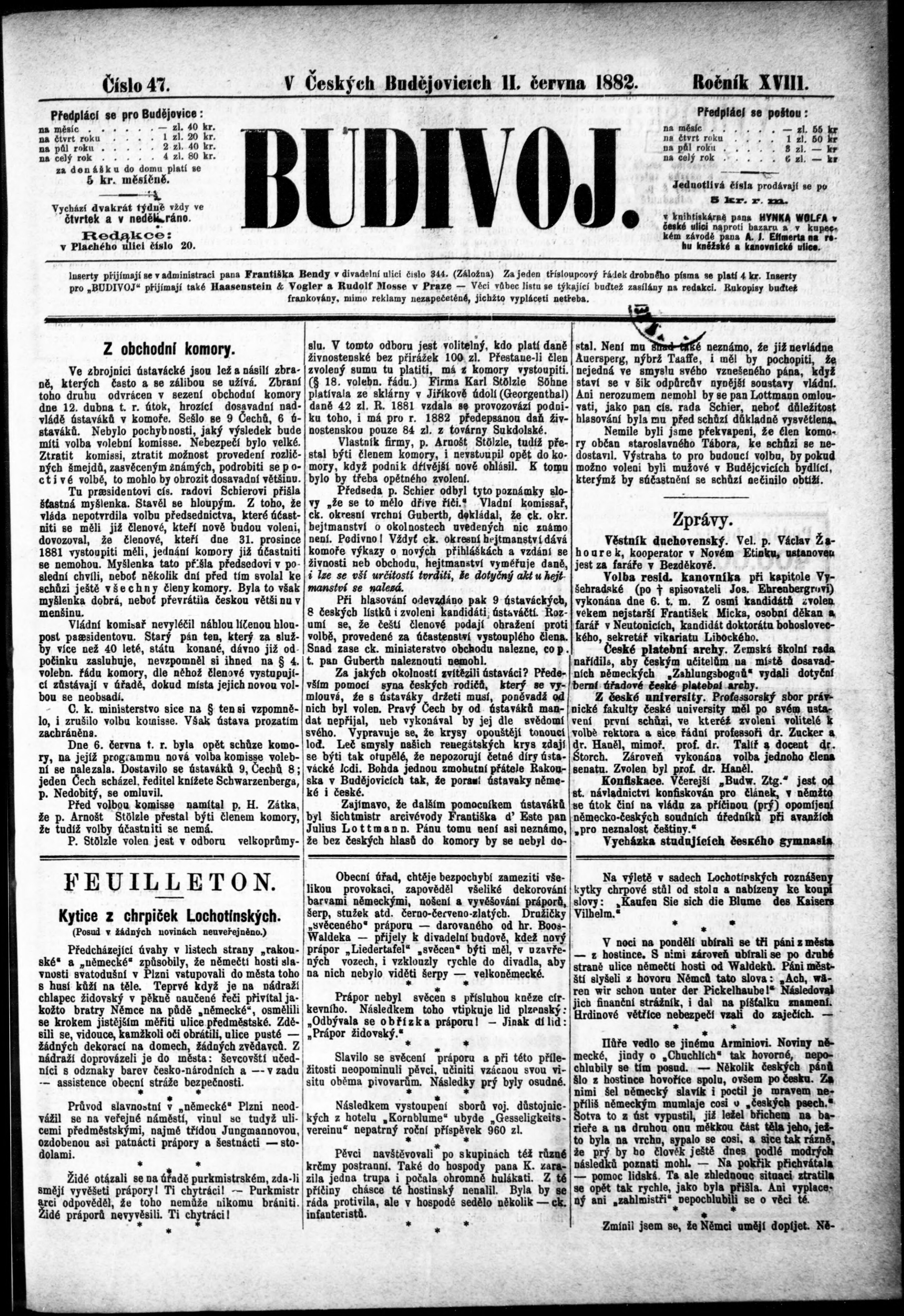 * Datum vydání výtisku: 11.6.1882 Číslo výtisku: 47