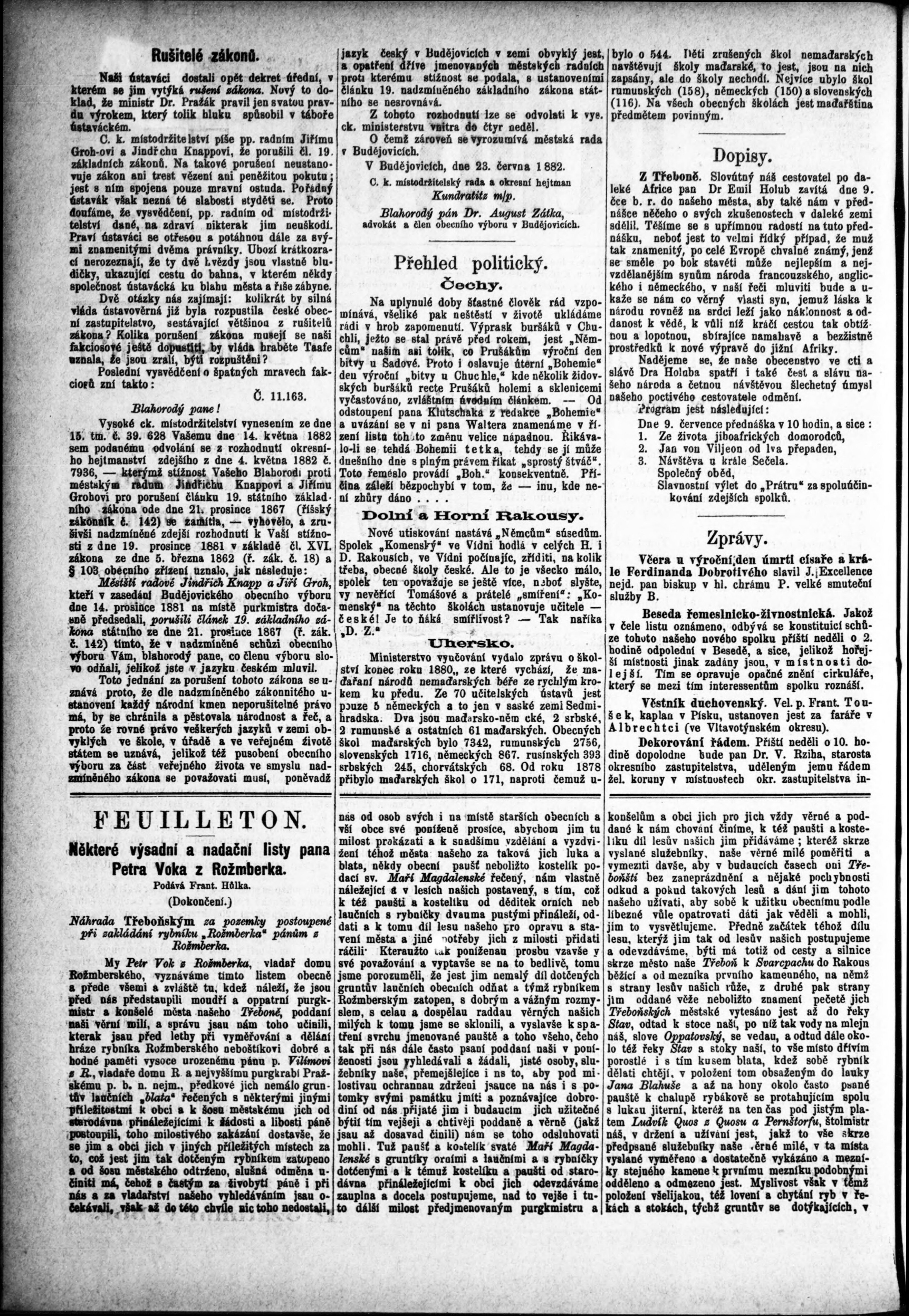 * Datum vydání výtisku: 29.6.1882 Číslo výtisku: 52