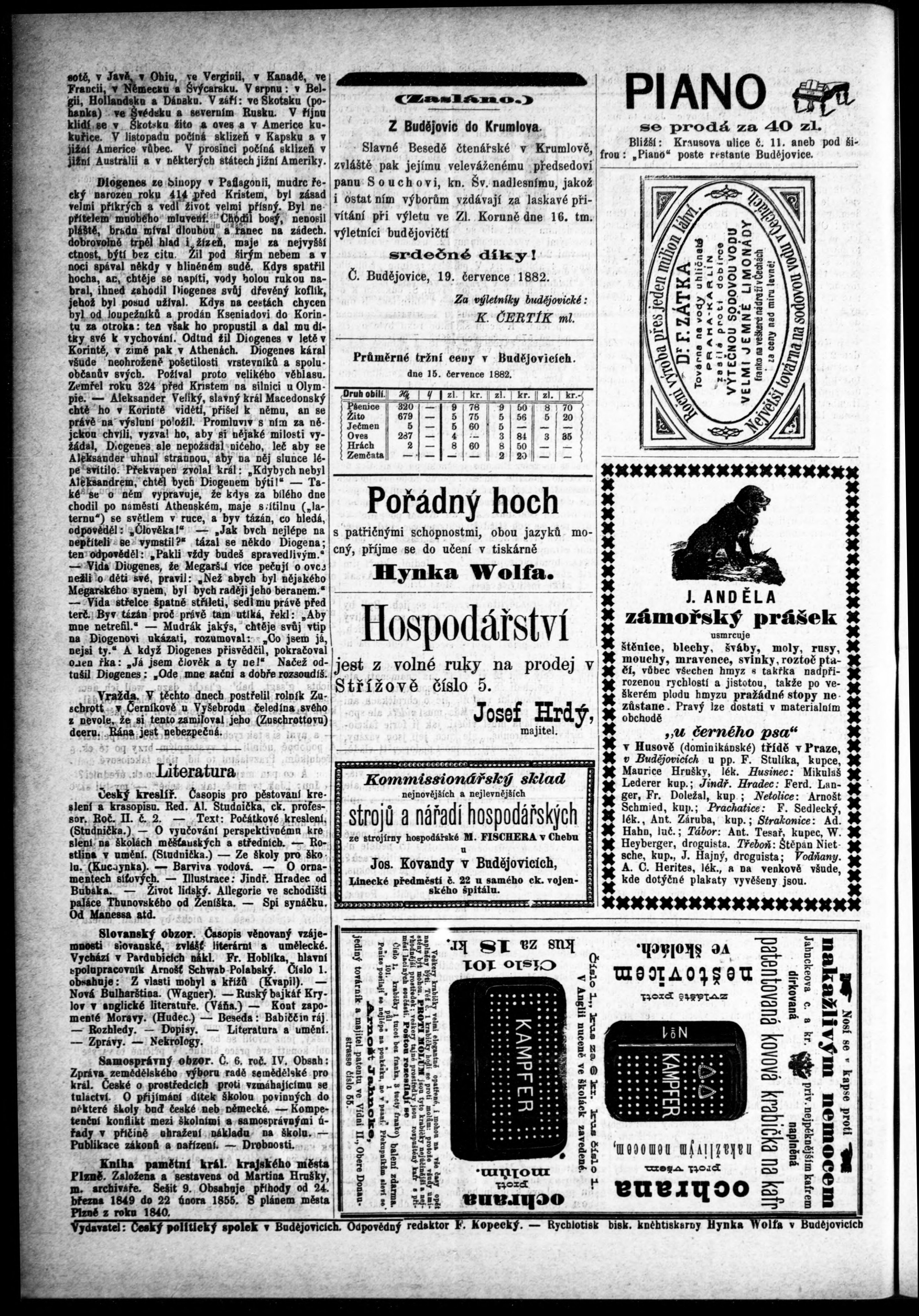 * Datum vydání výtisku: 20.7.1882 Číslo výtisku: 58 Poznámky k výtisku: s. (1) nekvalitní předloha;