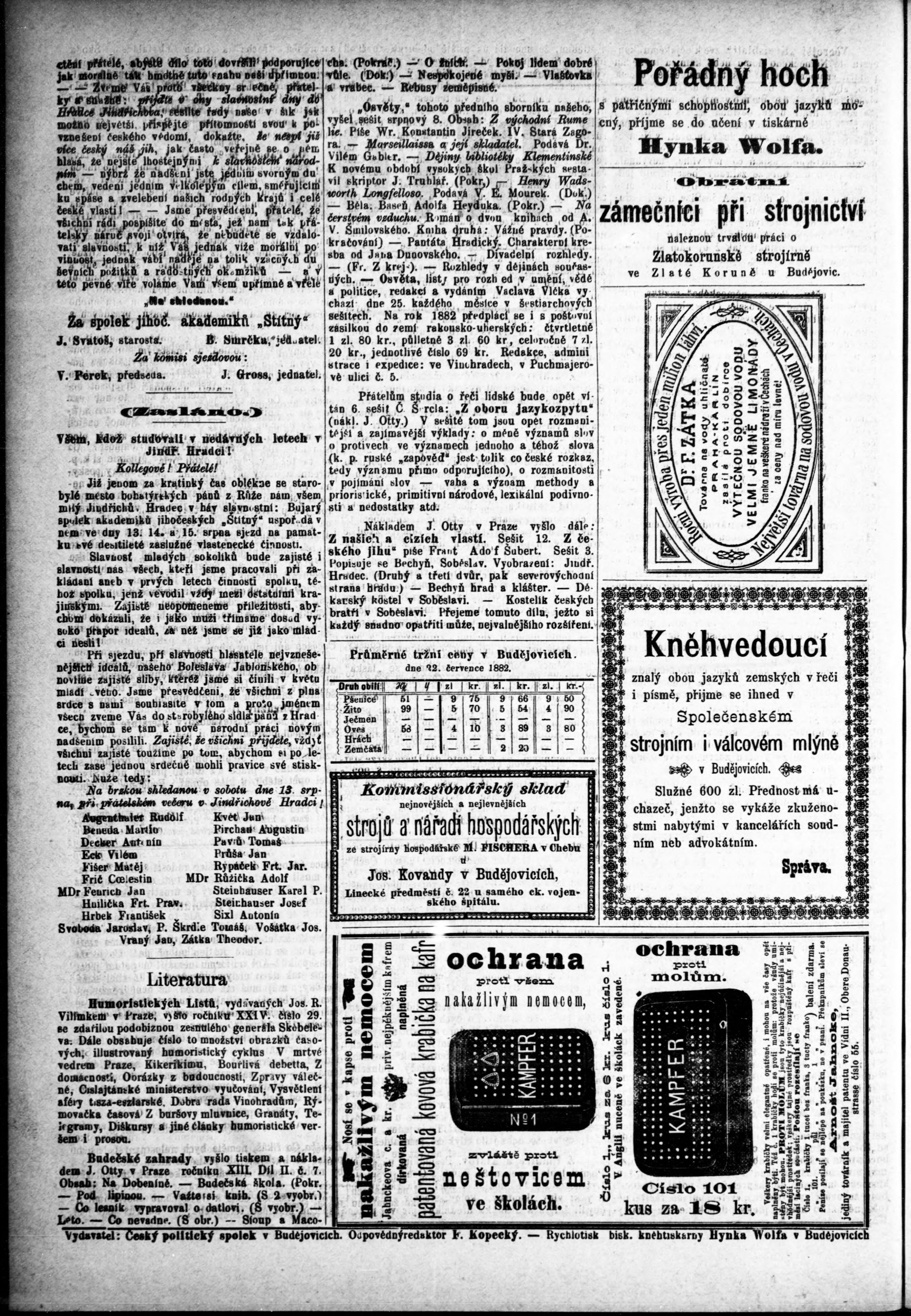 * Datum vydání výtisku: 27.7.1882 Číslo výtisku: 60 Poznámky k výtisku: s. (1) nekvalitní předloha;