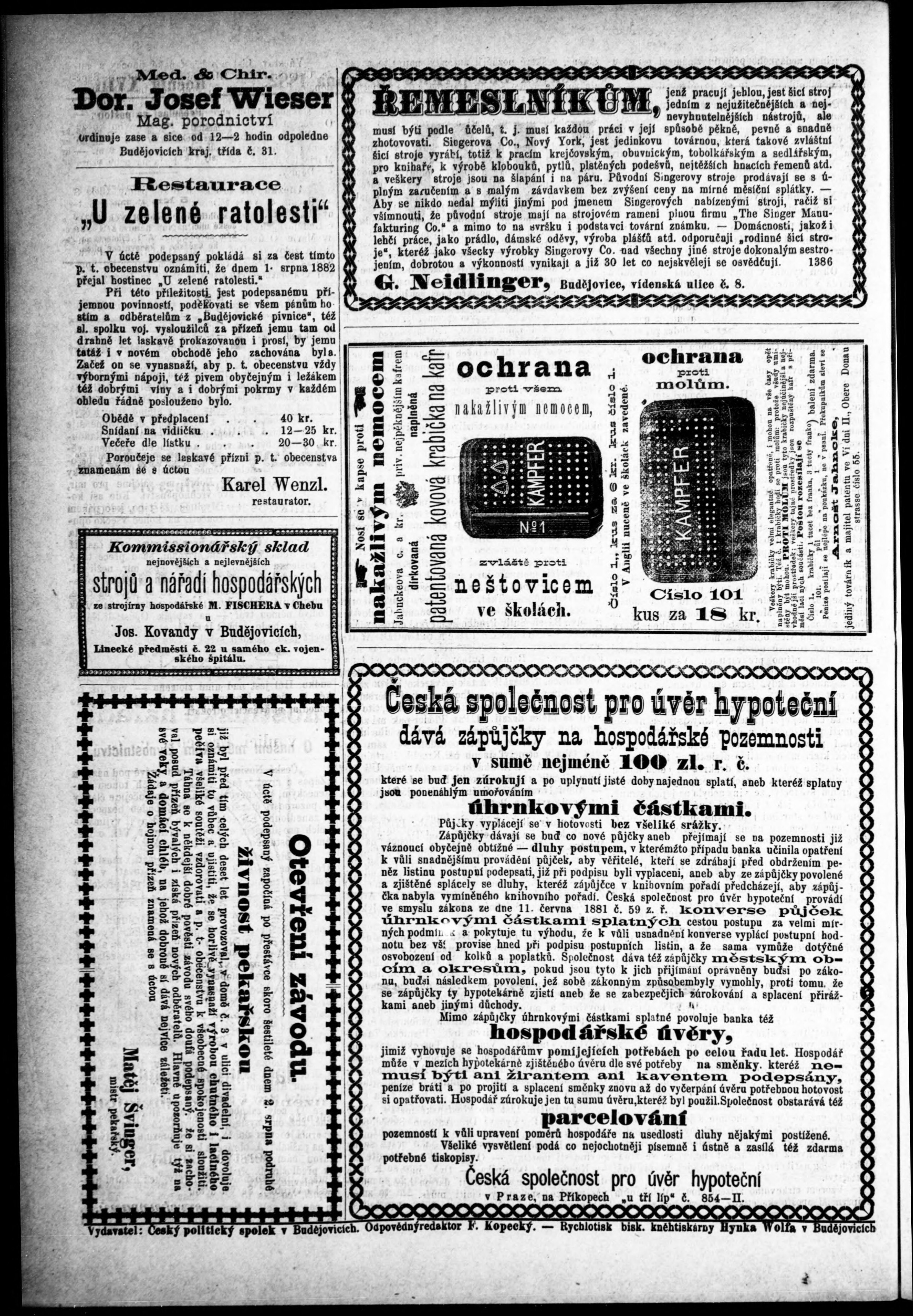 * Datum vydání výtisku: 3.8.1882 Číslo výtisku: 62