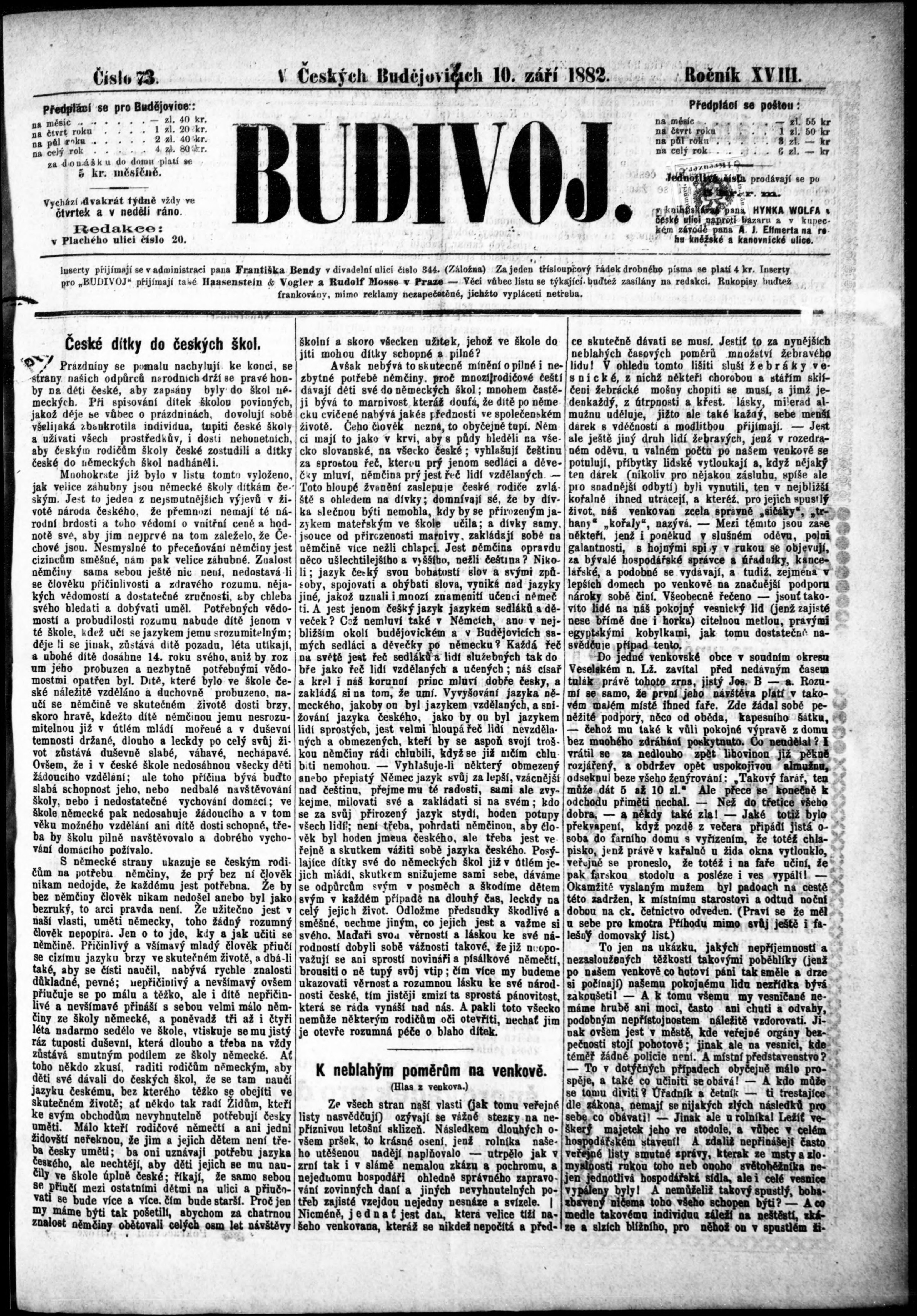 * Datum vydání výtisku: 10.9.1882 Číslo výtisku: 73 Poznámky k výtisku: s. (2) nekvalitní předloha;