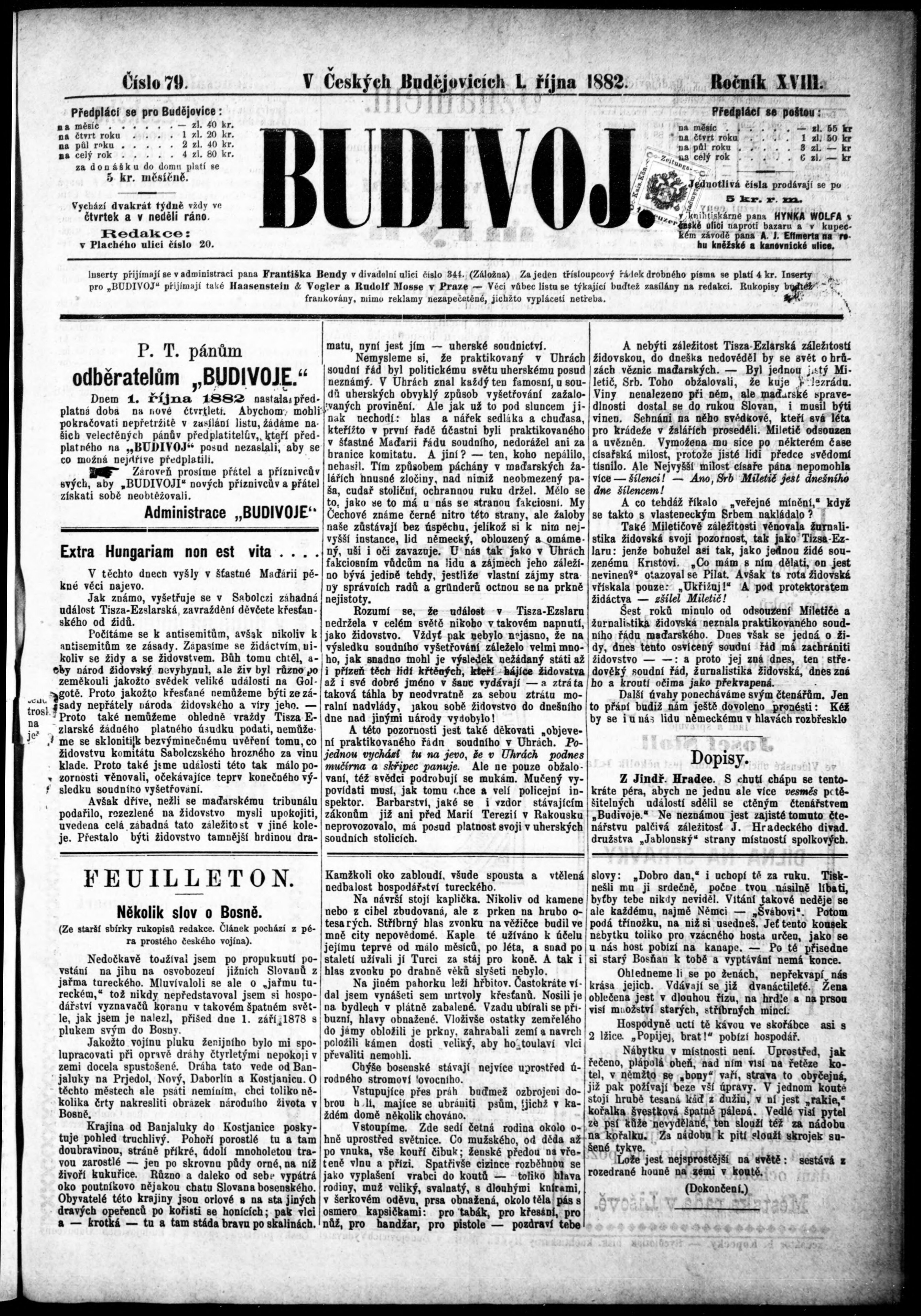 * Datum vydání výtisku: 1.10.1882 Číslo výtisku: 79