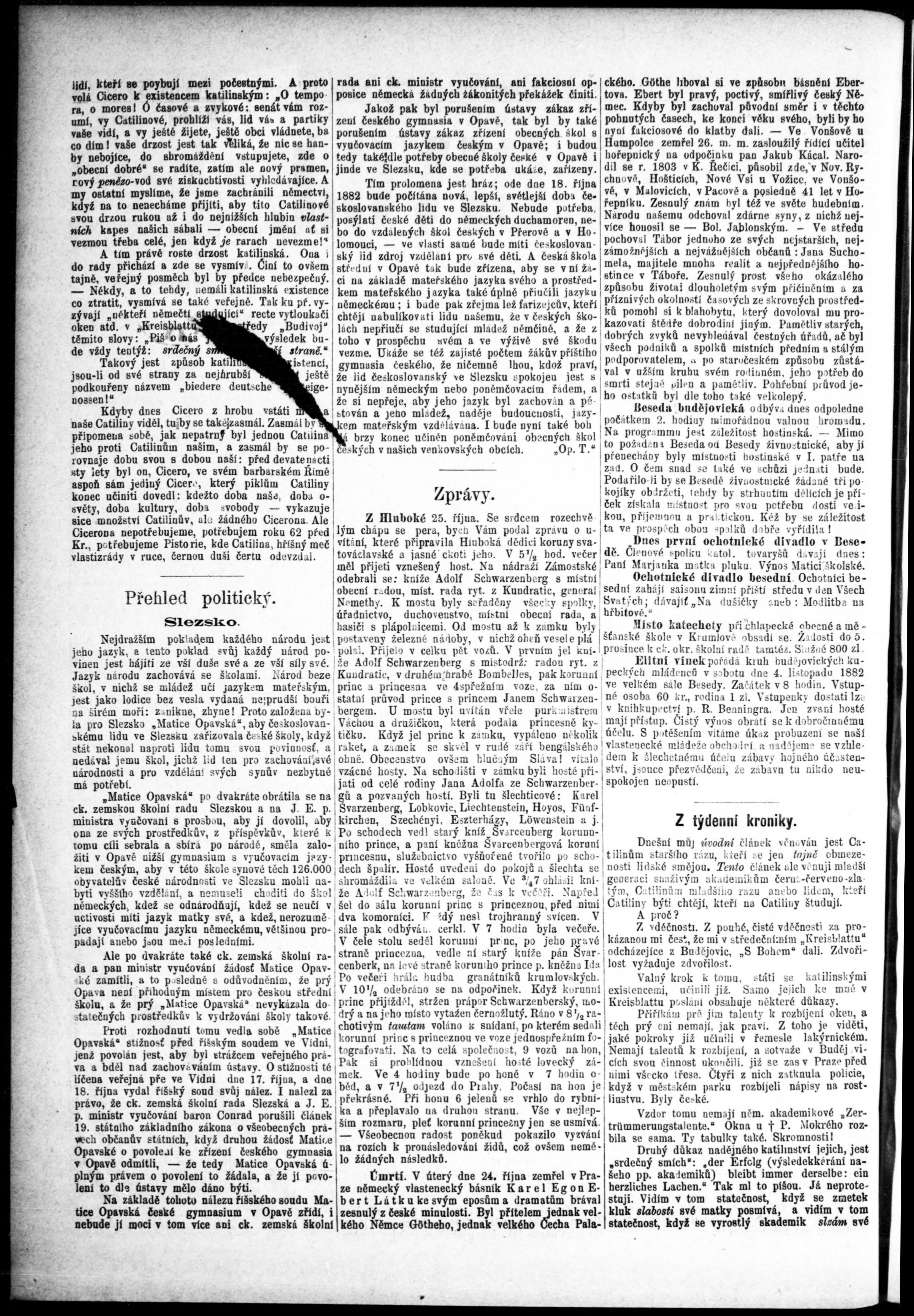 * Datum vydání výtisku: 29.10.1882 Číslo výtisku: 87 Poznámky k výtisku: s. (1) - (2) poškozená předloha;