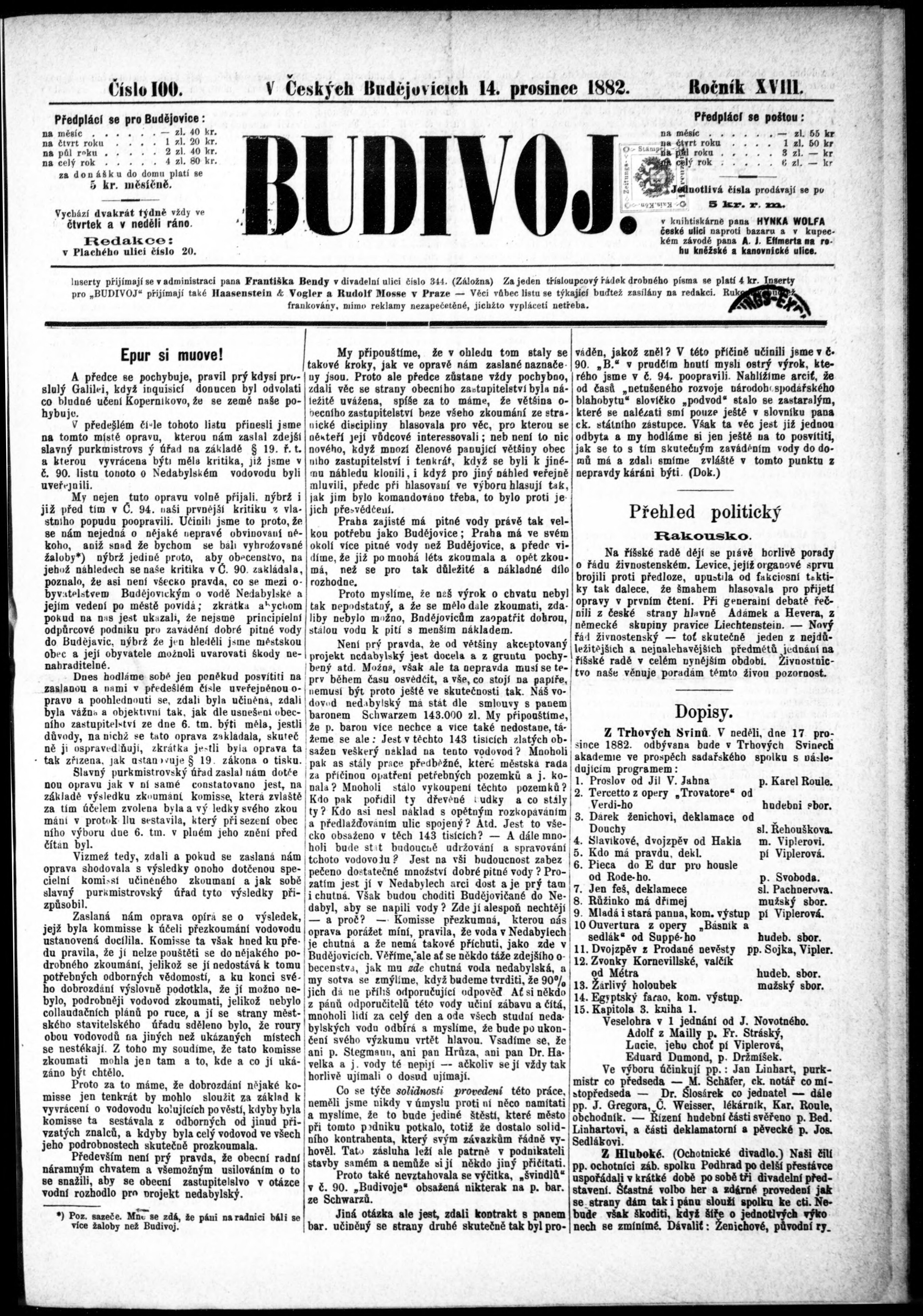 * Datum vydání výtisku: 14.12.1882 Číslo výtisku: 100