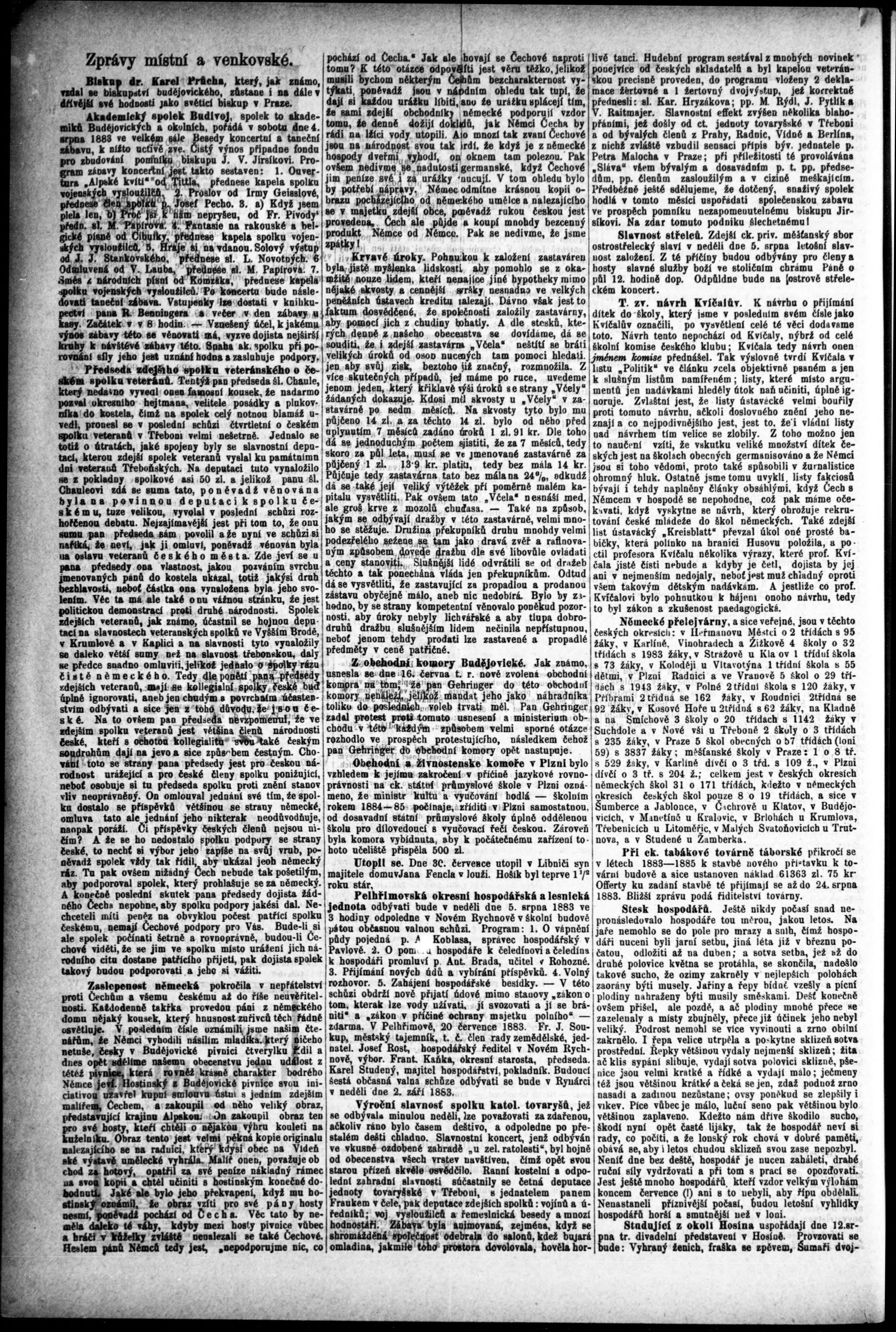 * Datum vydání výtisku: 2.8.1883 Číslo výtisku: 62 Poznámky k výtisku: s. (1) nekvalitní a poškozená předloha;