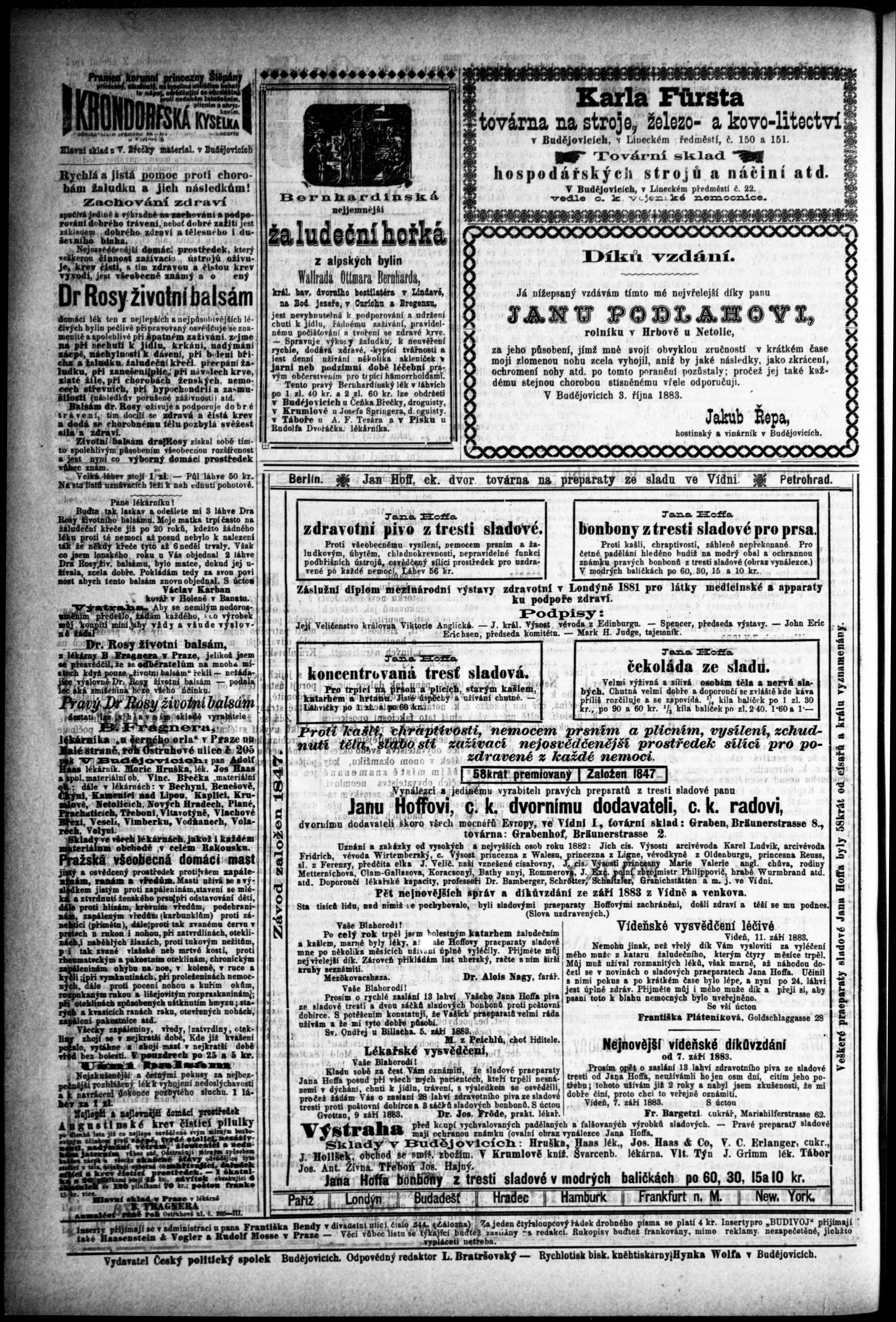 * Datum vydání výtisku: 7.10.1883 Číslo výtisku: 81 Poznámky k výtisku: s. (1) - (2), (4) nekvalitní předloha;