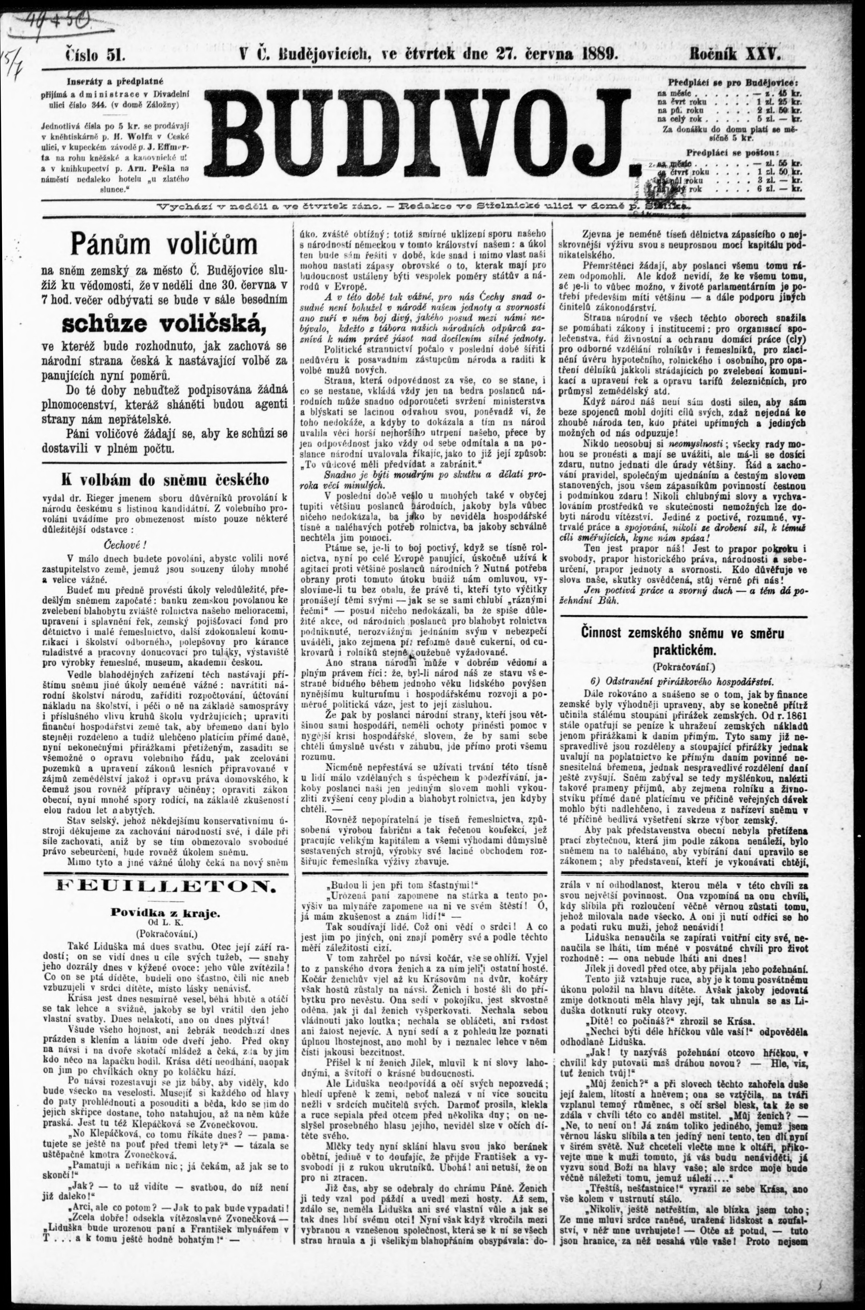 * Datum vydání výtisku: 27.6.1889 Číslo výtisku: 51