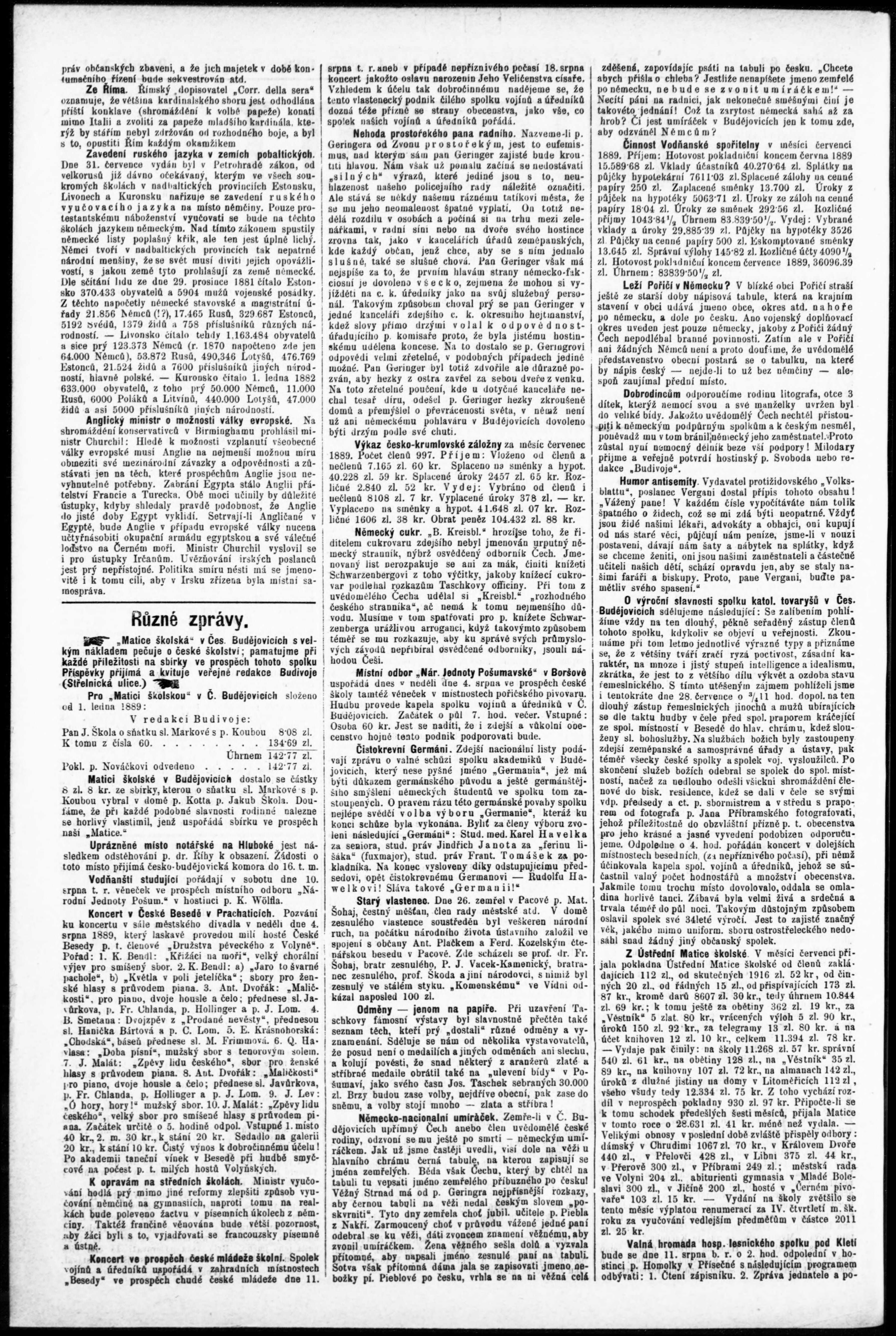 * Datum vydání výtisku: 4.8.1889 Číslo výtisku: 62