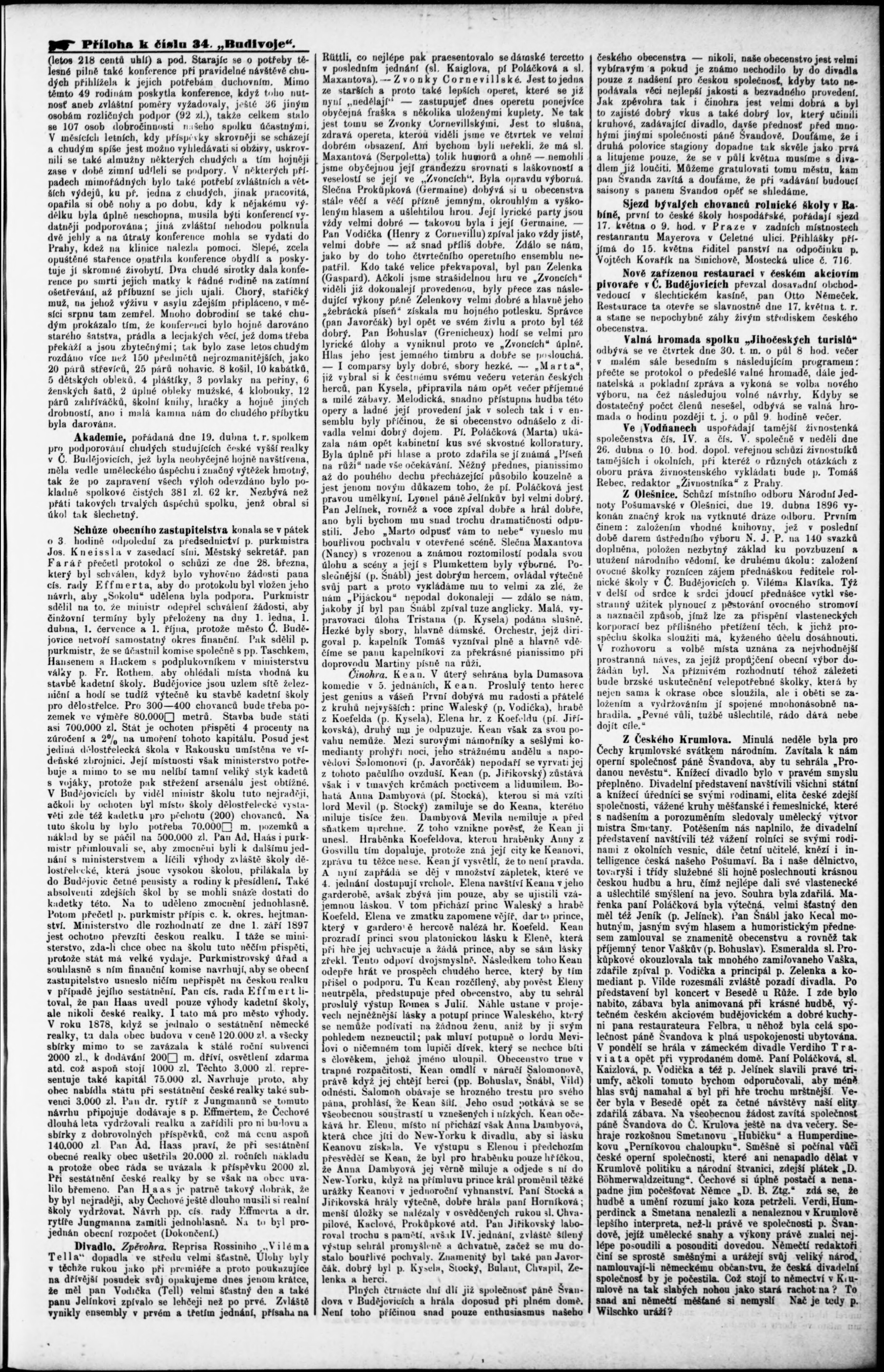 * Datum vydání výtisku: 26.4.1896 Číslo výtisku: 34 Typ výtisku: příloha