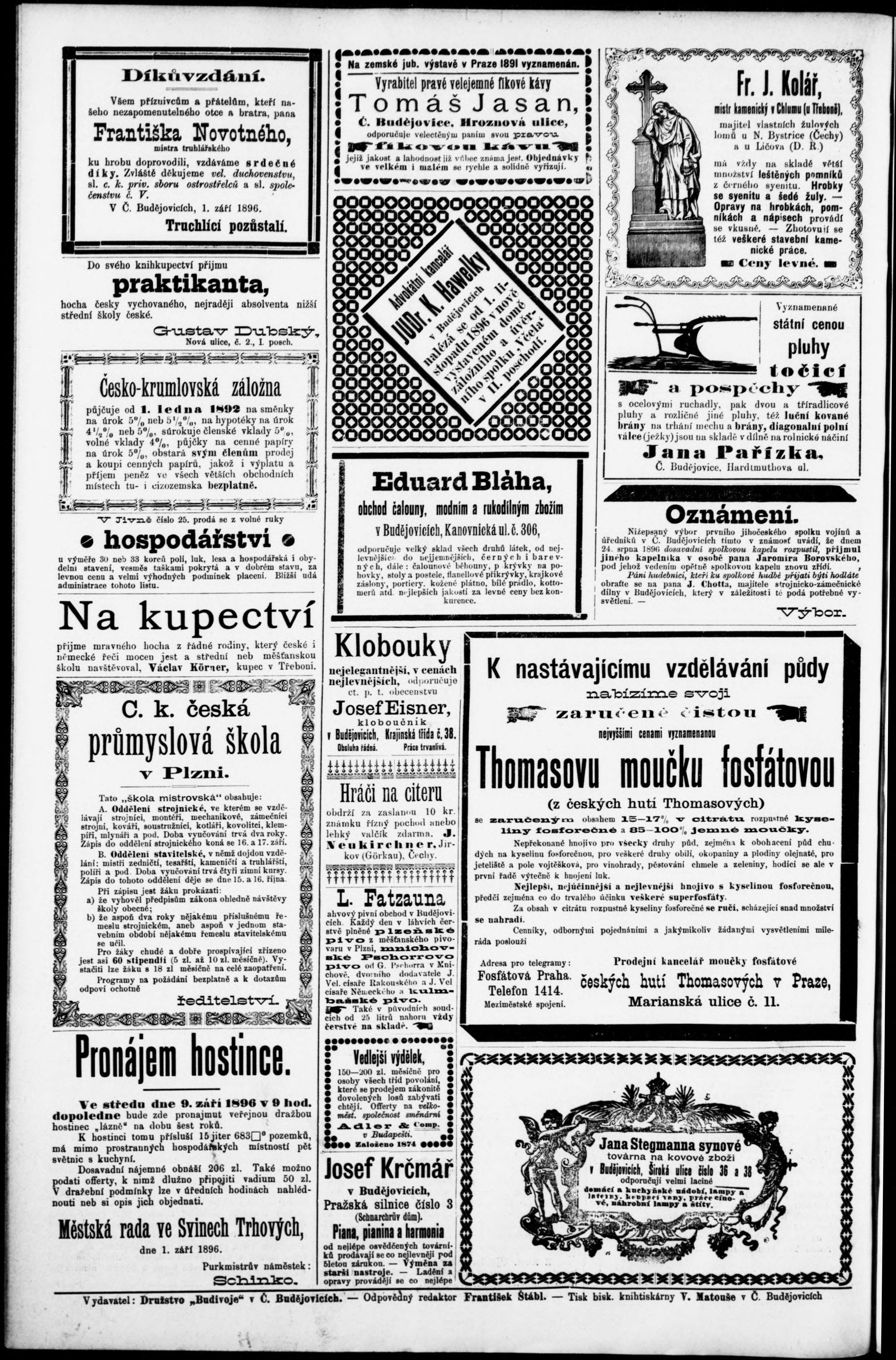 * Datum vydání výtisku: 3.8.1896 Číslo výtisku: 71 Poznámky k výtisku: konfiskované vydání;