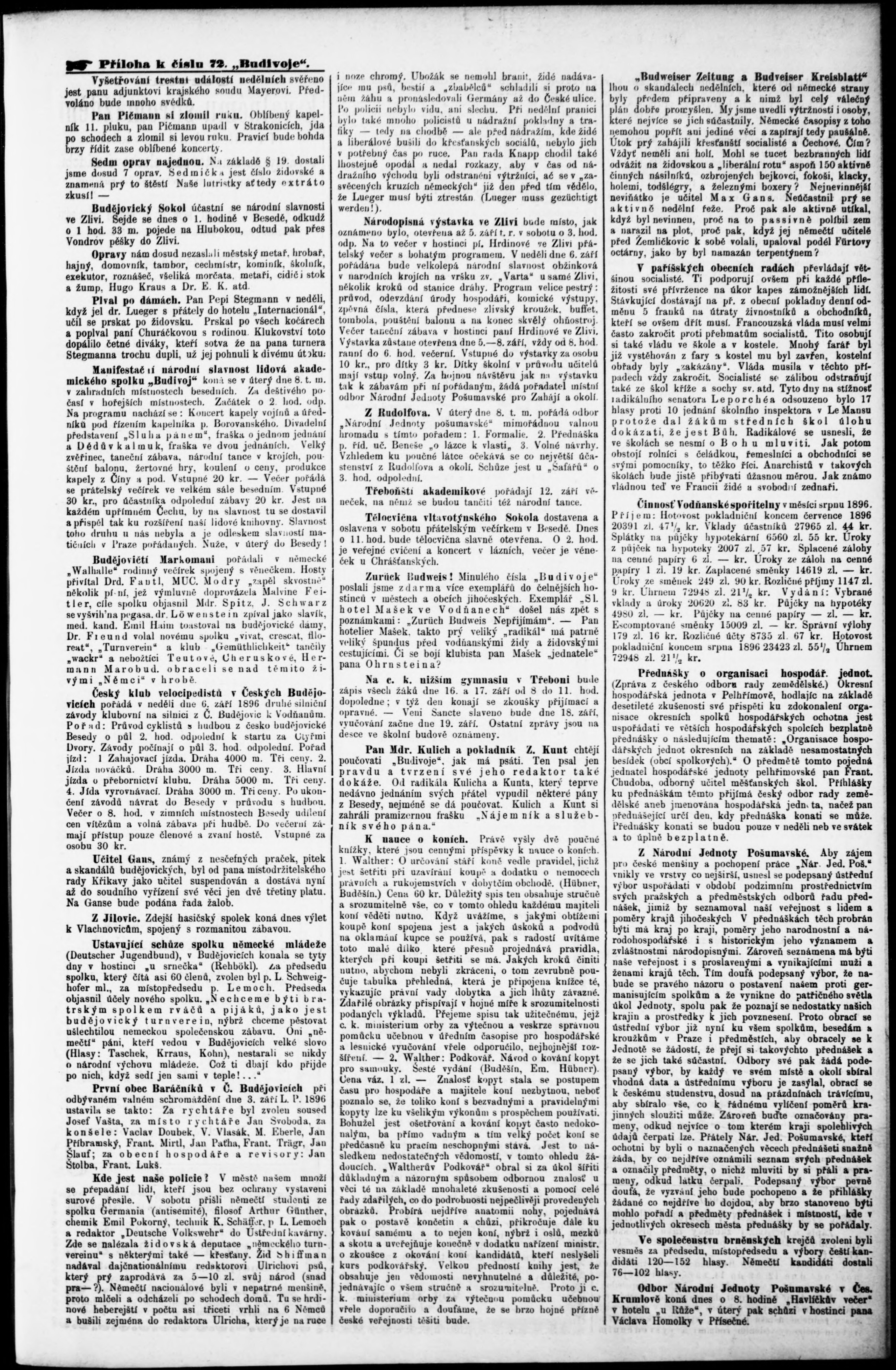 * Datum vydání výtisku: 6.8.1896 Číslo výtisku: 72 Typ výtisku: příloha