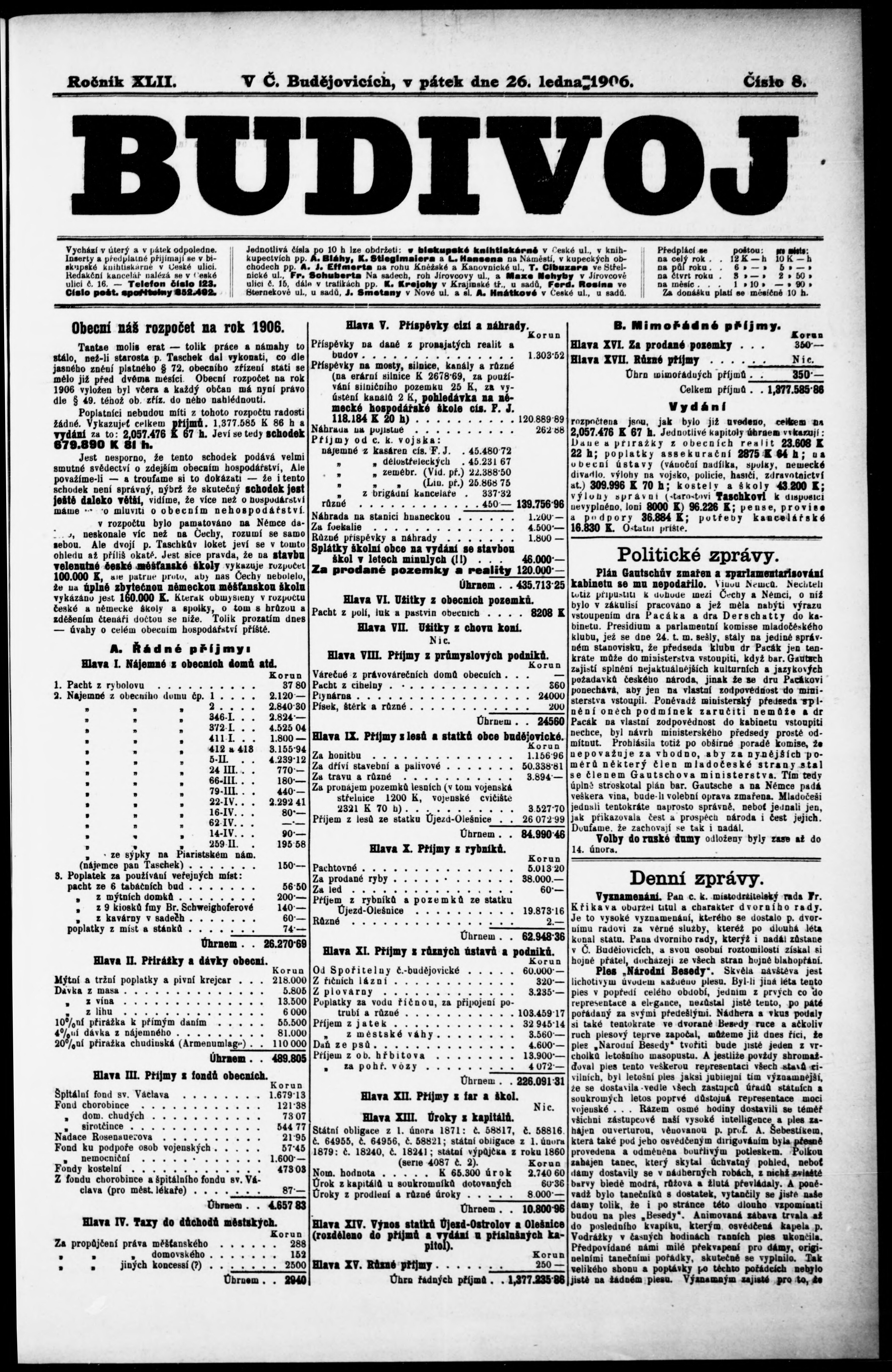 * Datum vydání výtisku: 26.1.1906 Číslo výtisku: 8