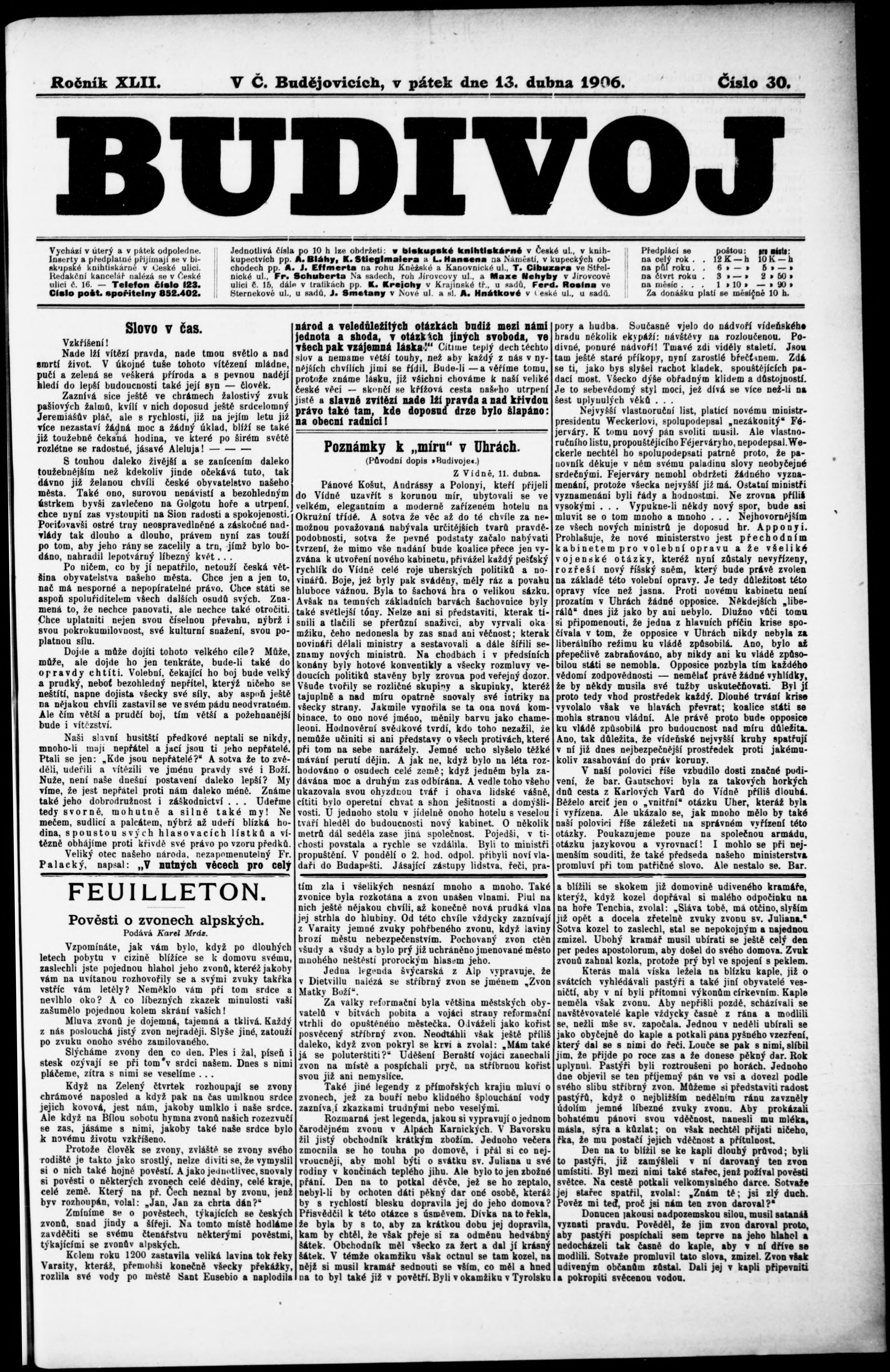 * Datum vydání výtisku: 13.4.1906 Číslo výtisku: 30