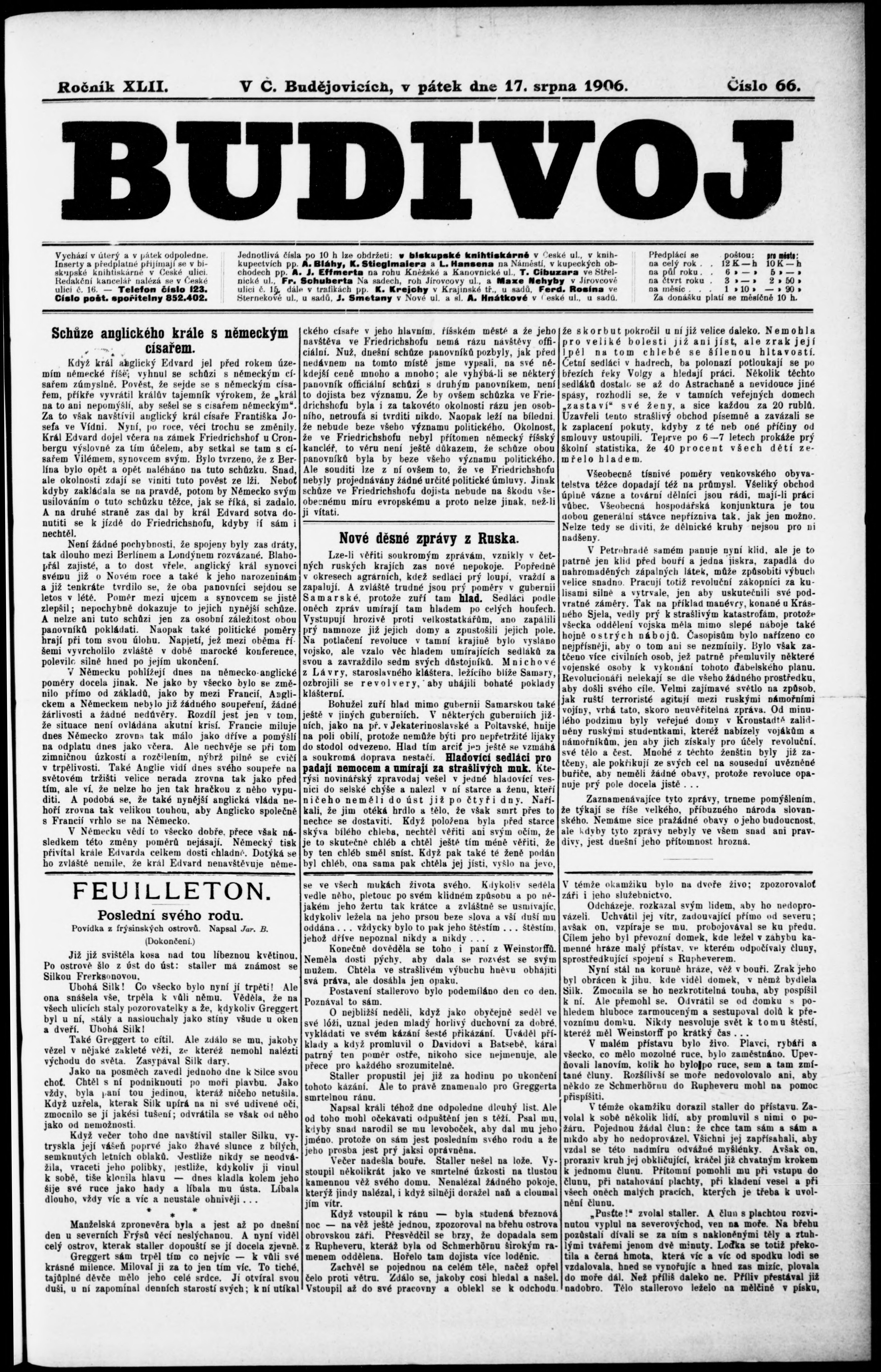 * Datum vydání výtisku: 17.8.1906 Číslo výtisku: 66