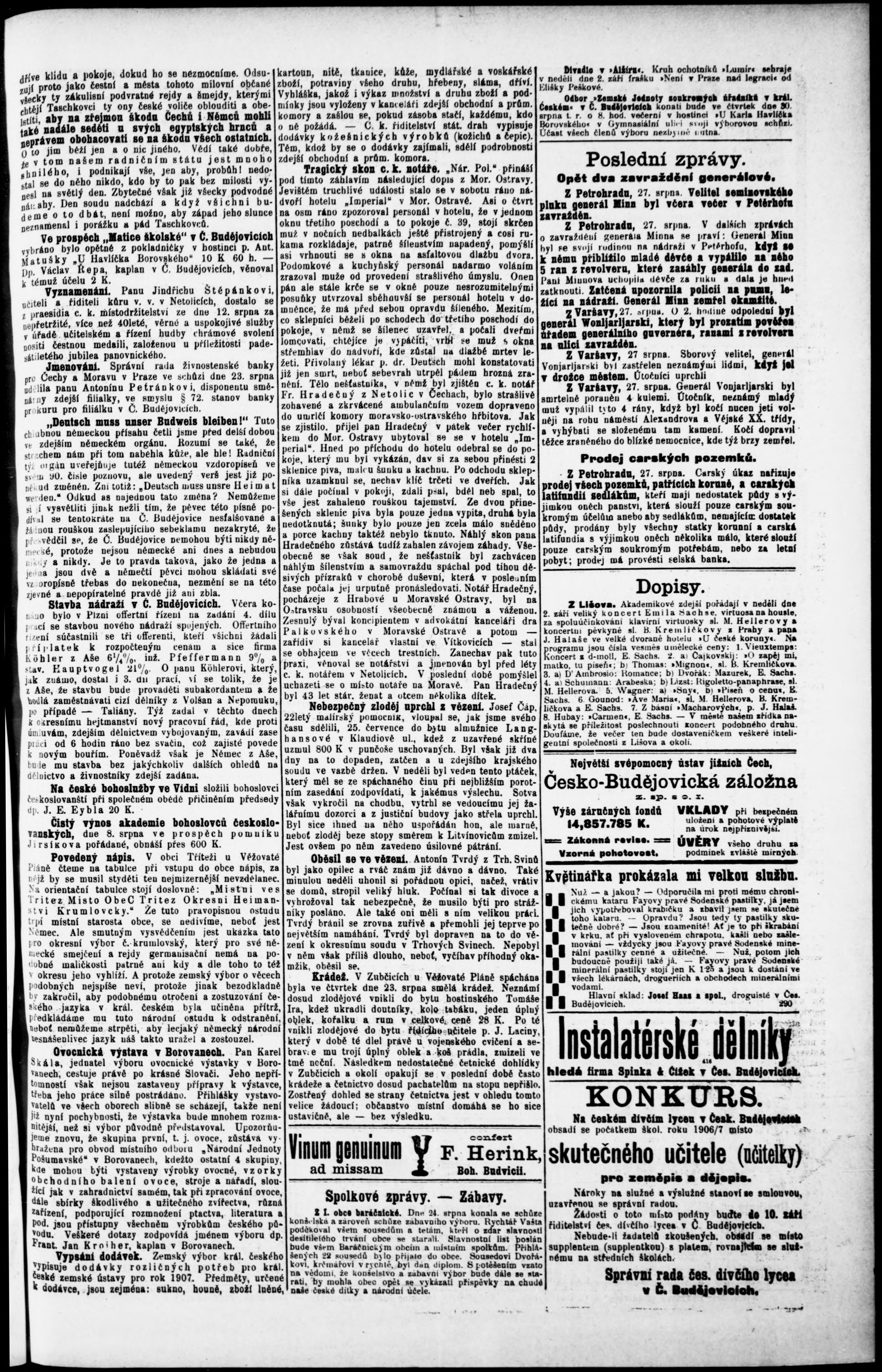 * Datum vydání výtisku: 28.8.1906 Číslo výtisku: 69