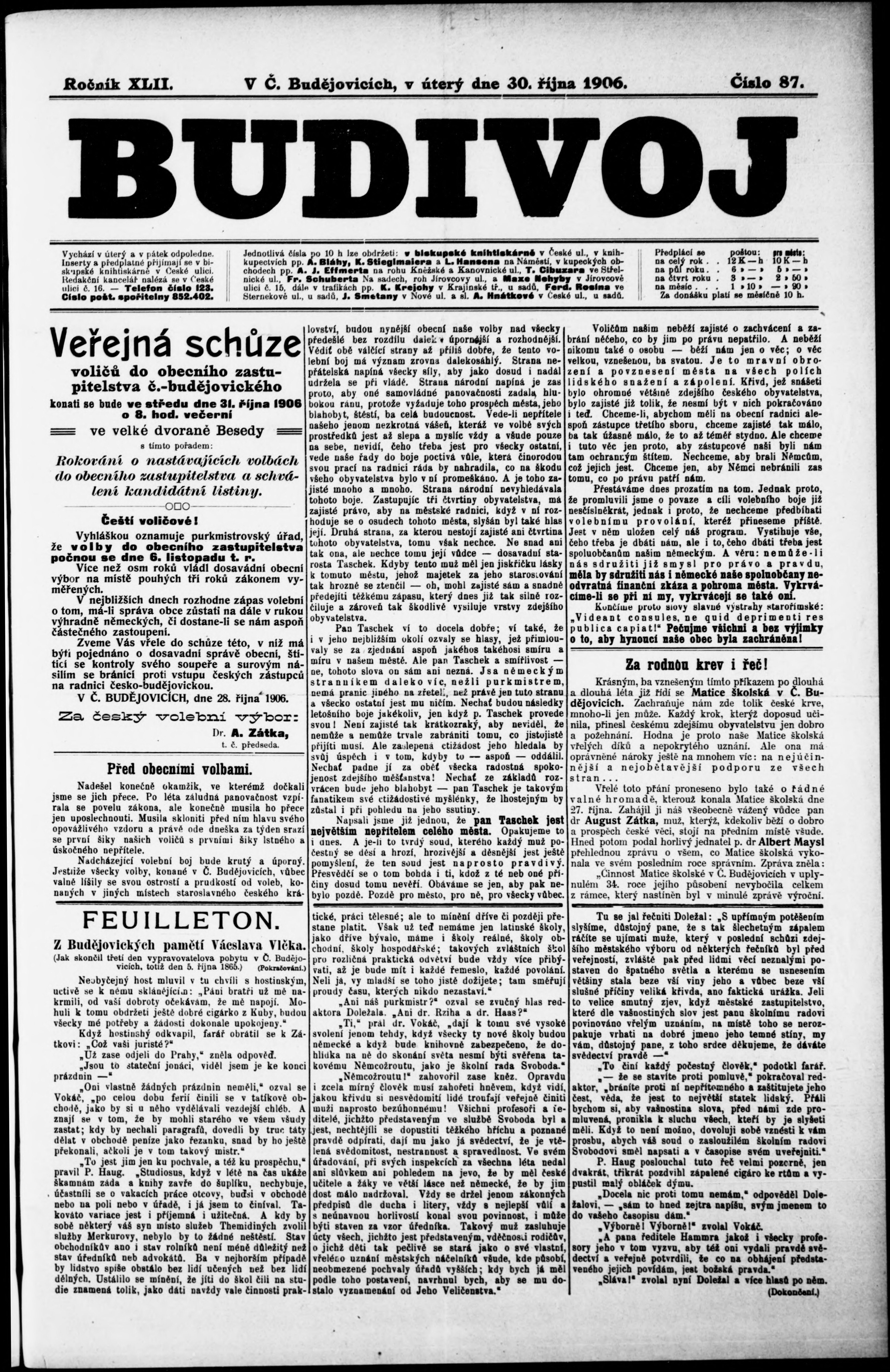 * Datum vydání výtisku: 30.10.1906 Číslo výtisku: 87