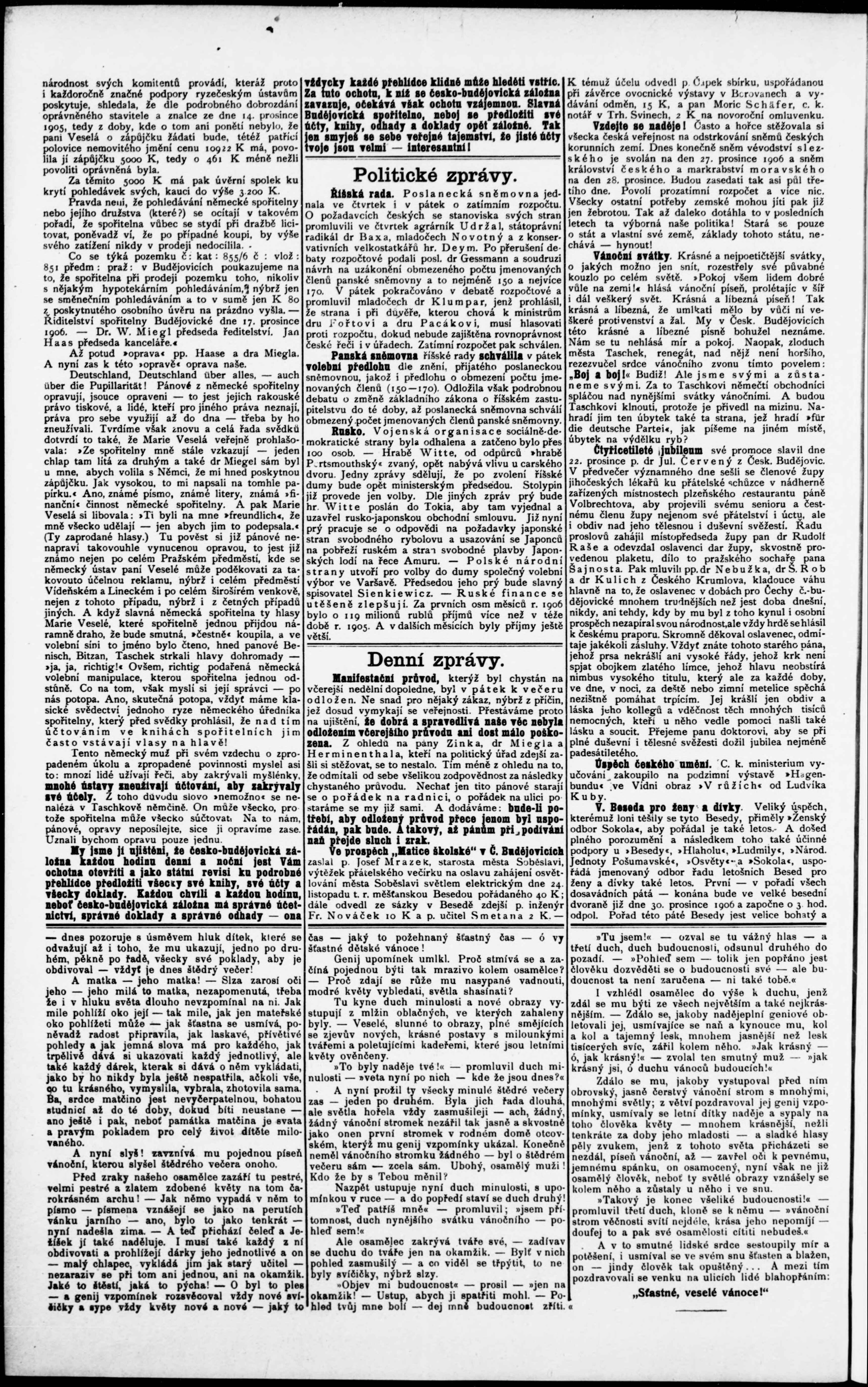* Datum vydání výtisku: 24.12.1906 Číslo výtisku: 105