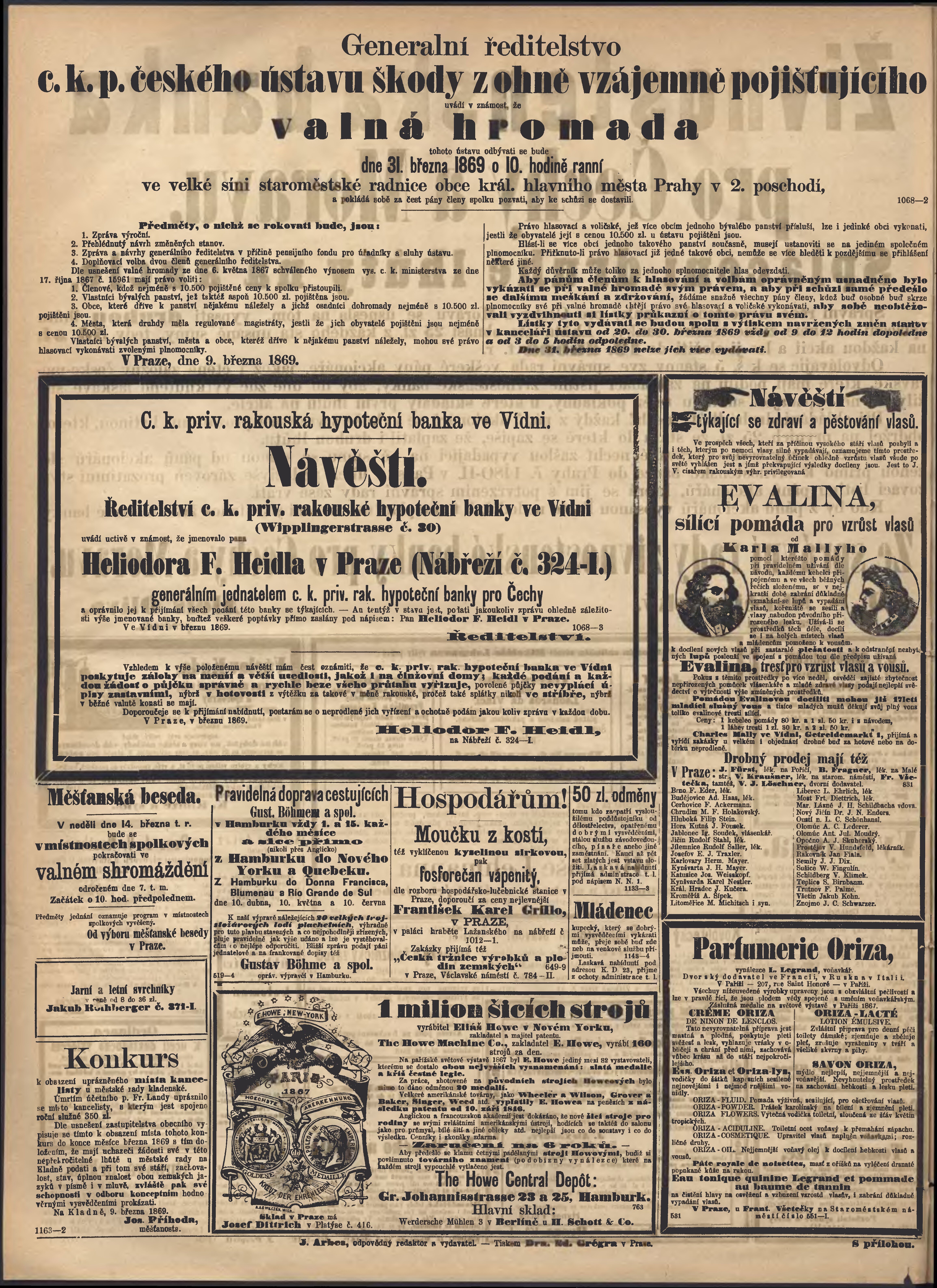 * Datum vydání výtisku: 14.3.1869 Číslo výtisku: 73