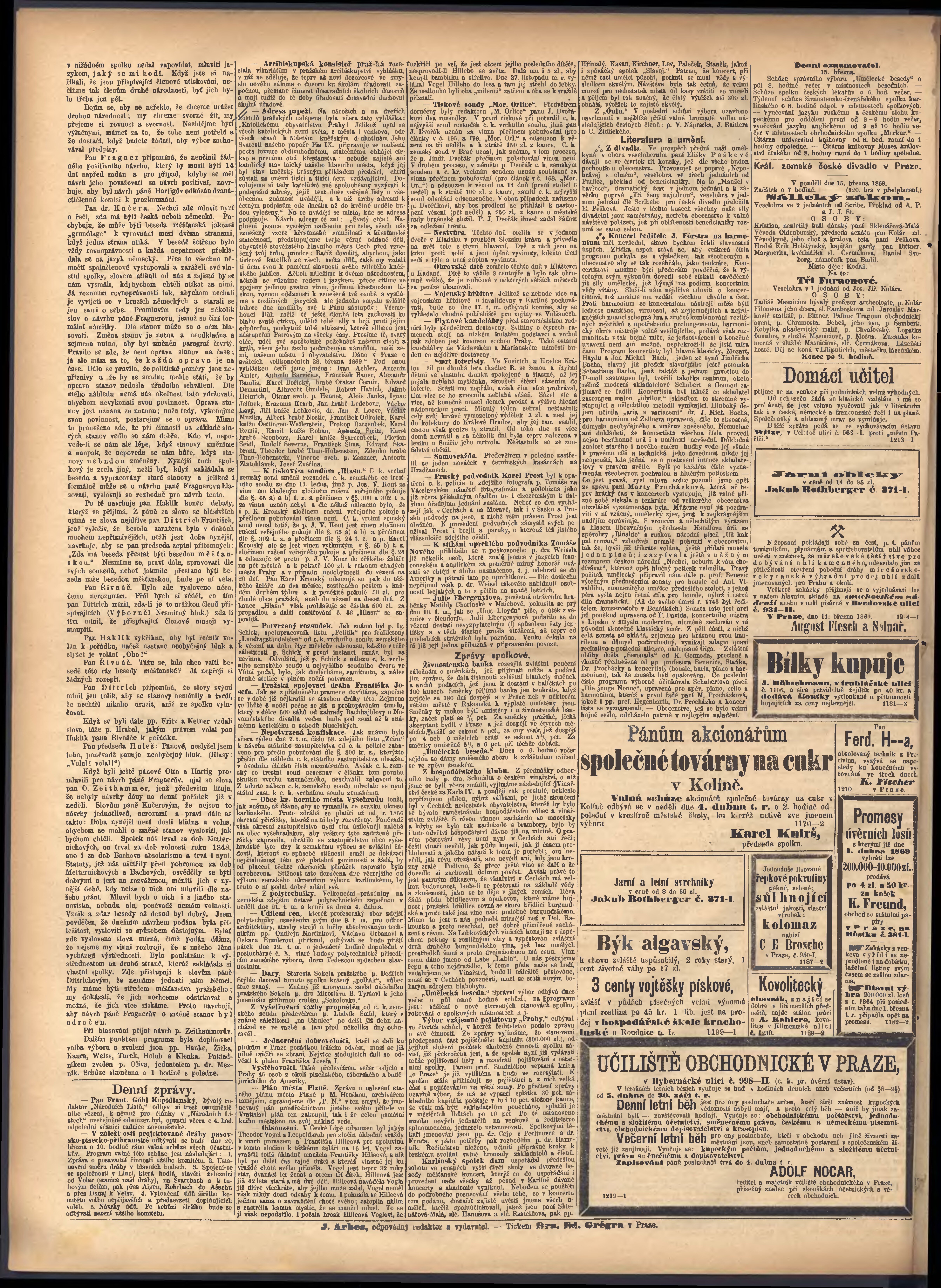 * Datum vydání výtisku: 15.3.1869 Číslo výtisku: 74