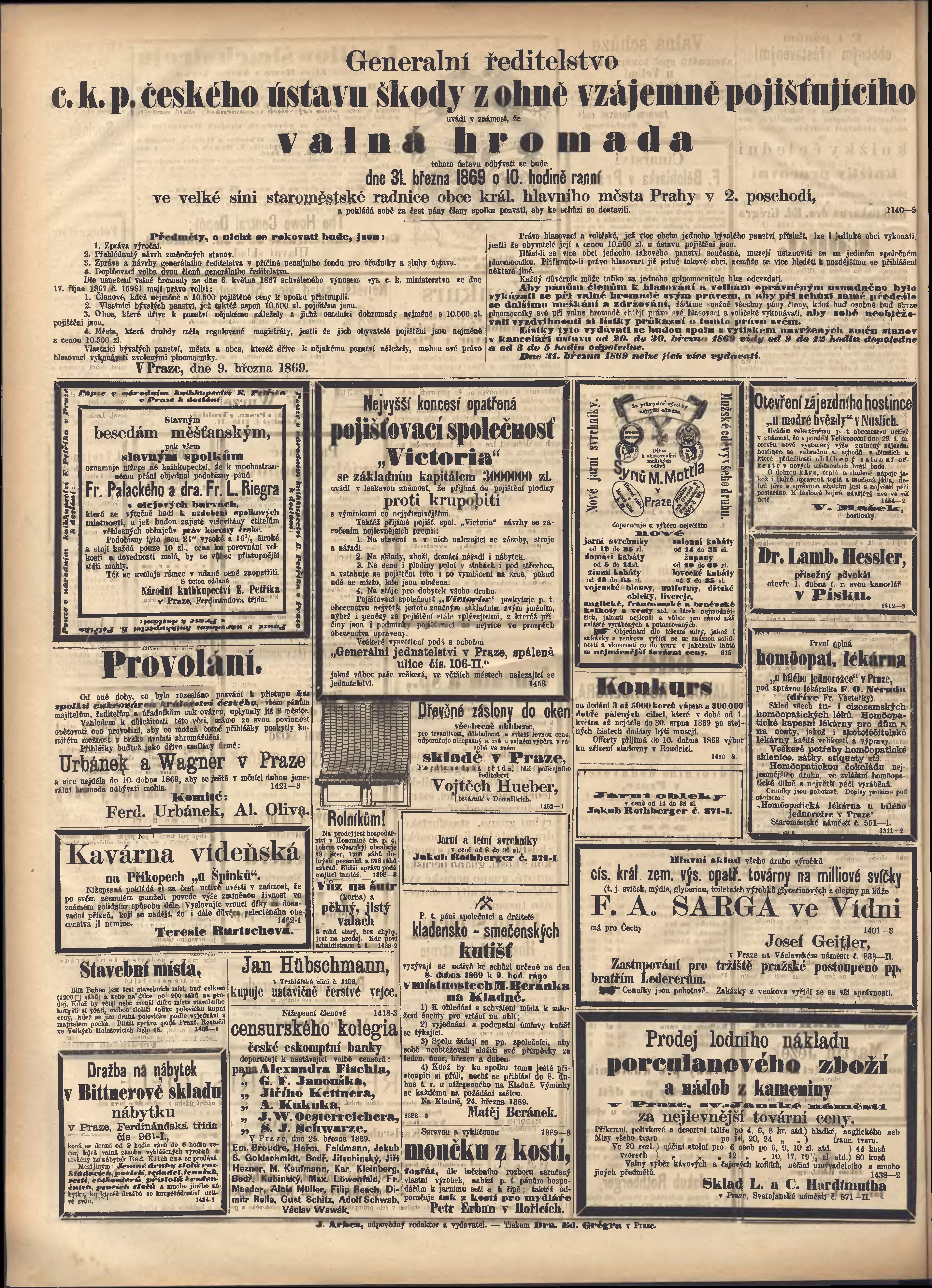 * Datum vydání výtisku: 30.3.1869 Číslo výtisku: 88