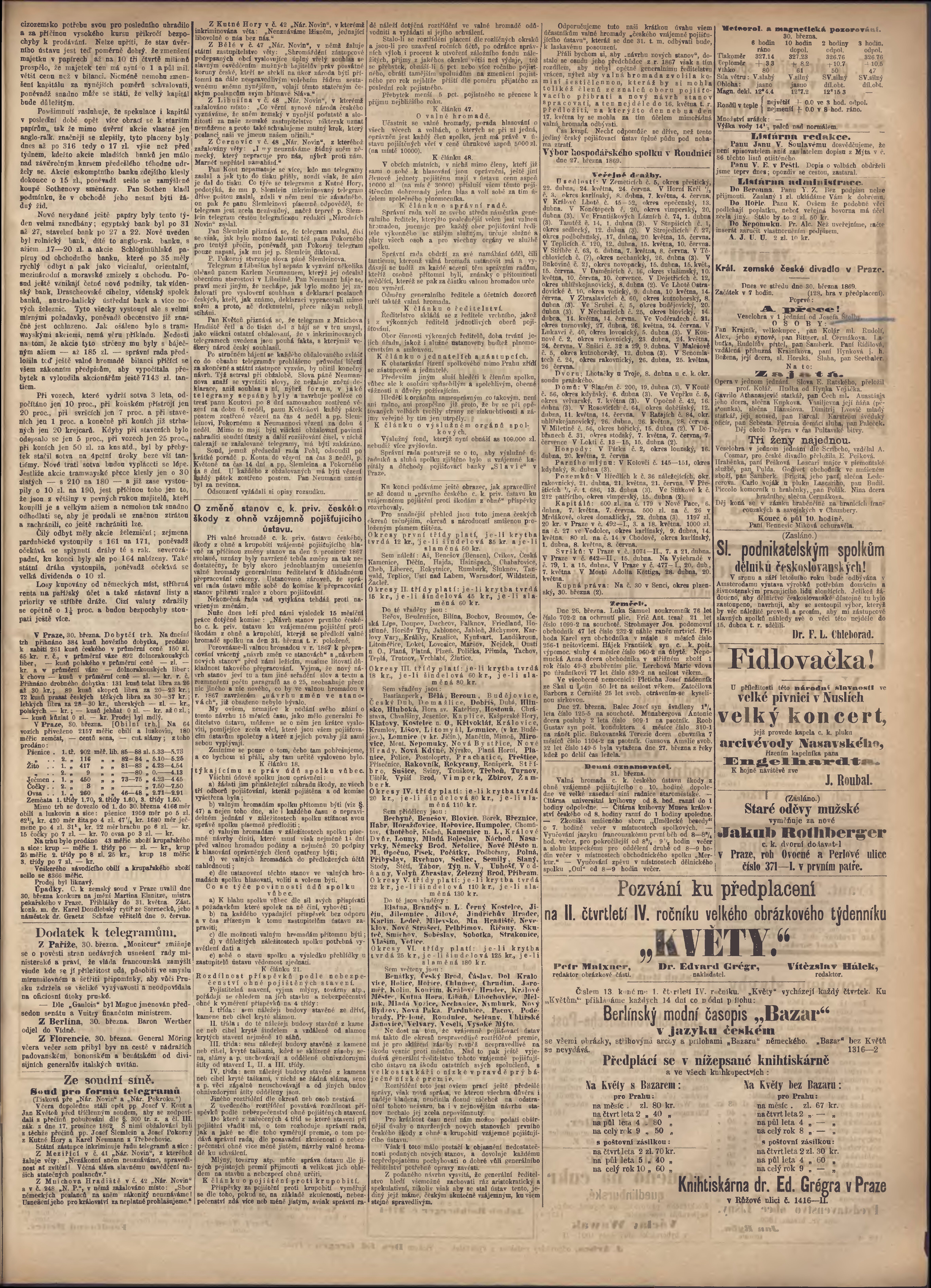 * Datum vydání výtisku: 31.3.1869 Číslo výtisku: 89