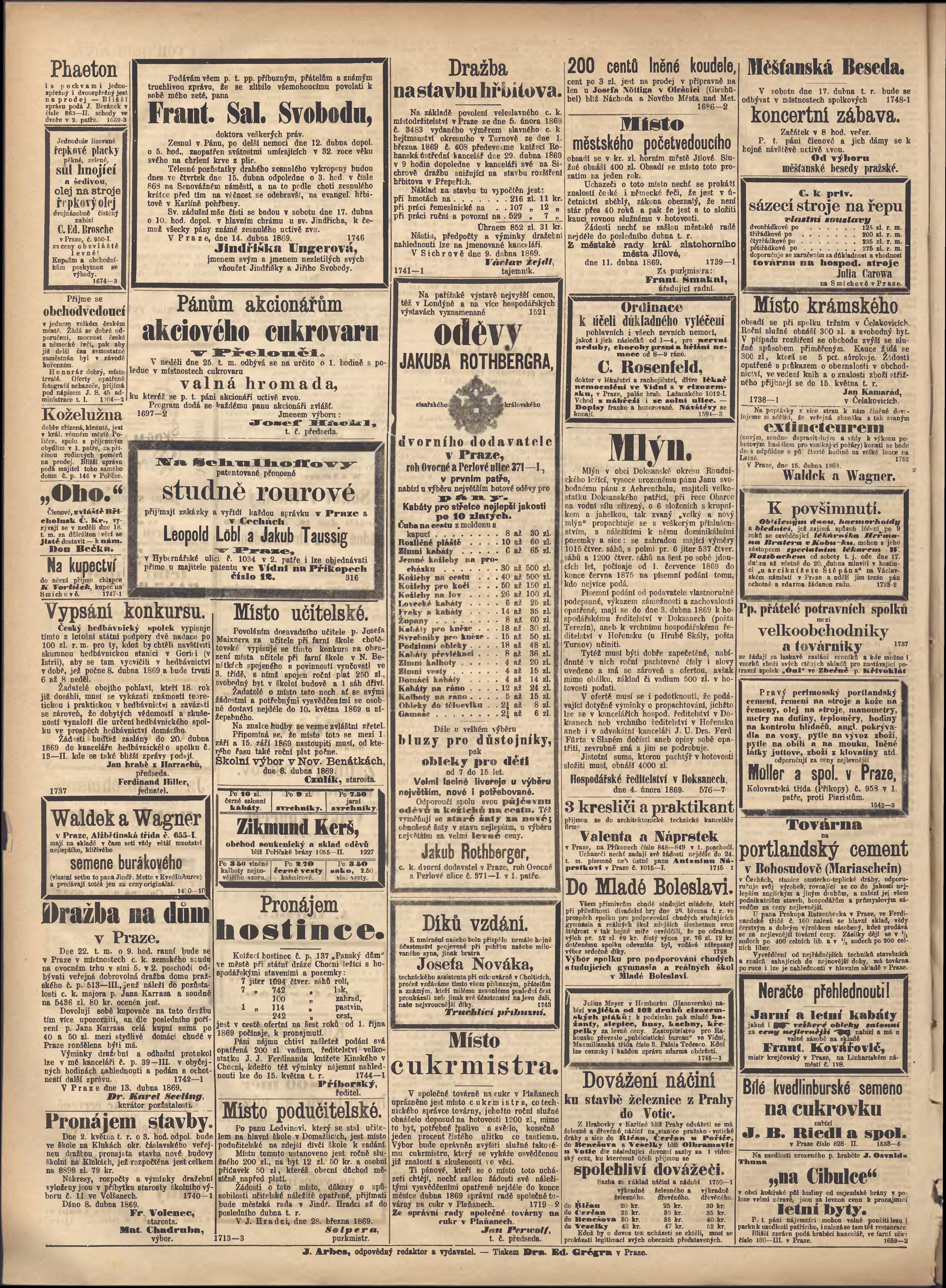 * Datum vydání výtisku: 15.4.1869 Číslo výtisku: 104
