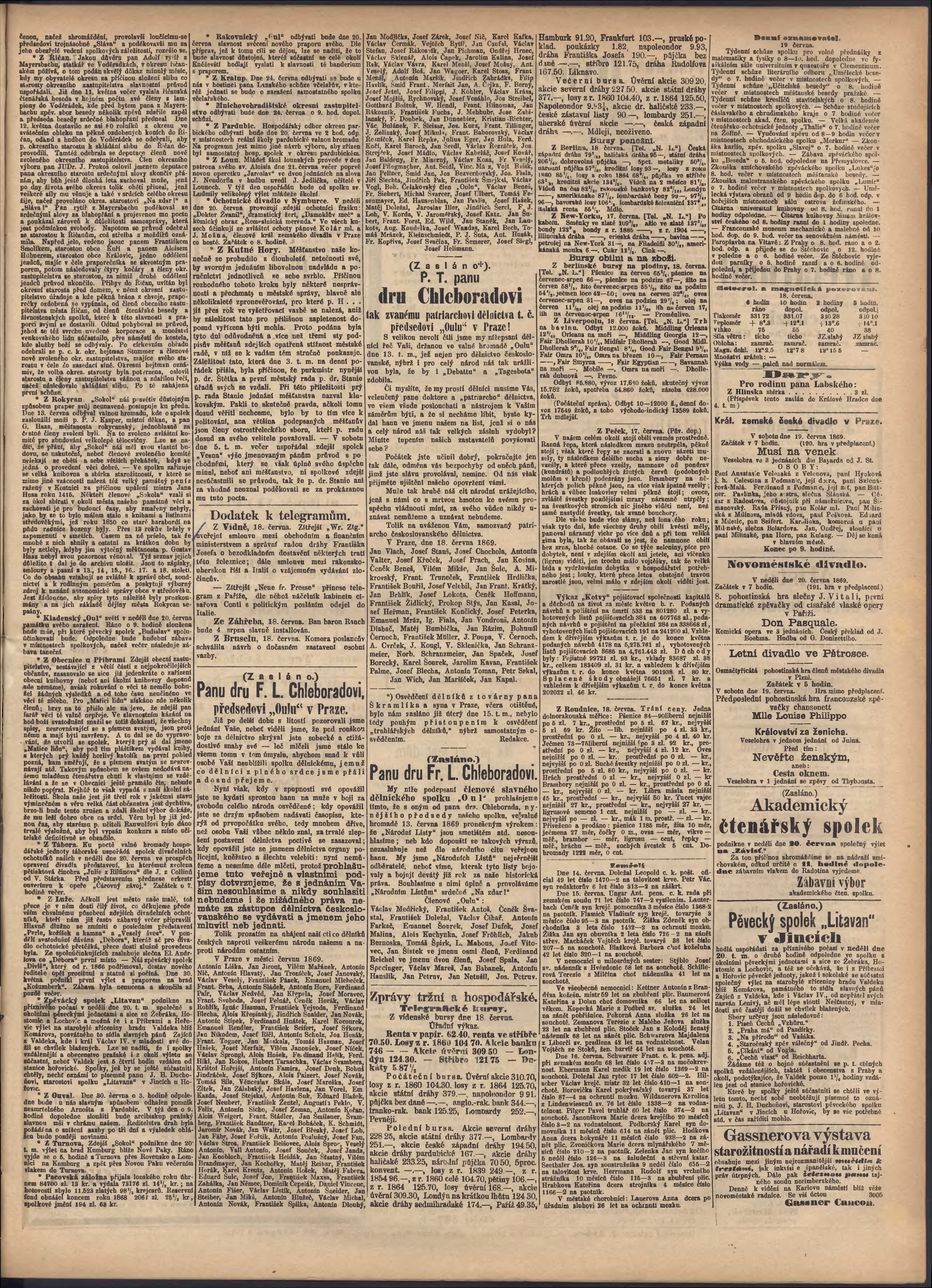 * Datum vydání výtisku: 19.6.1869 Číslo výtisku: 167