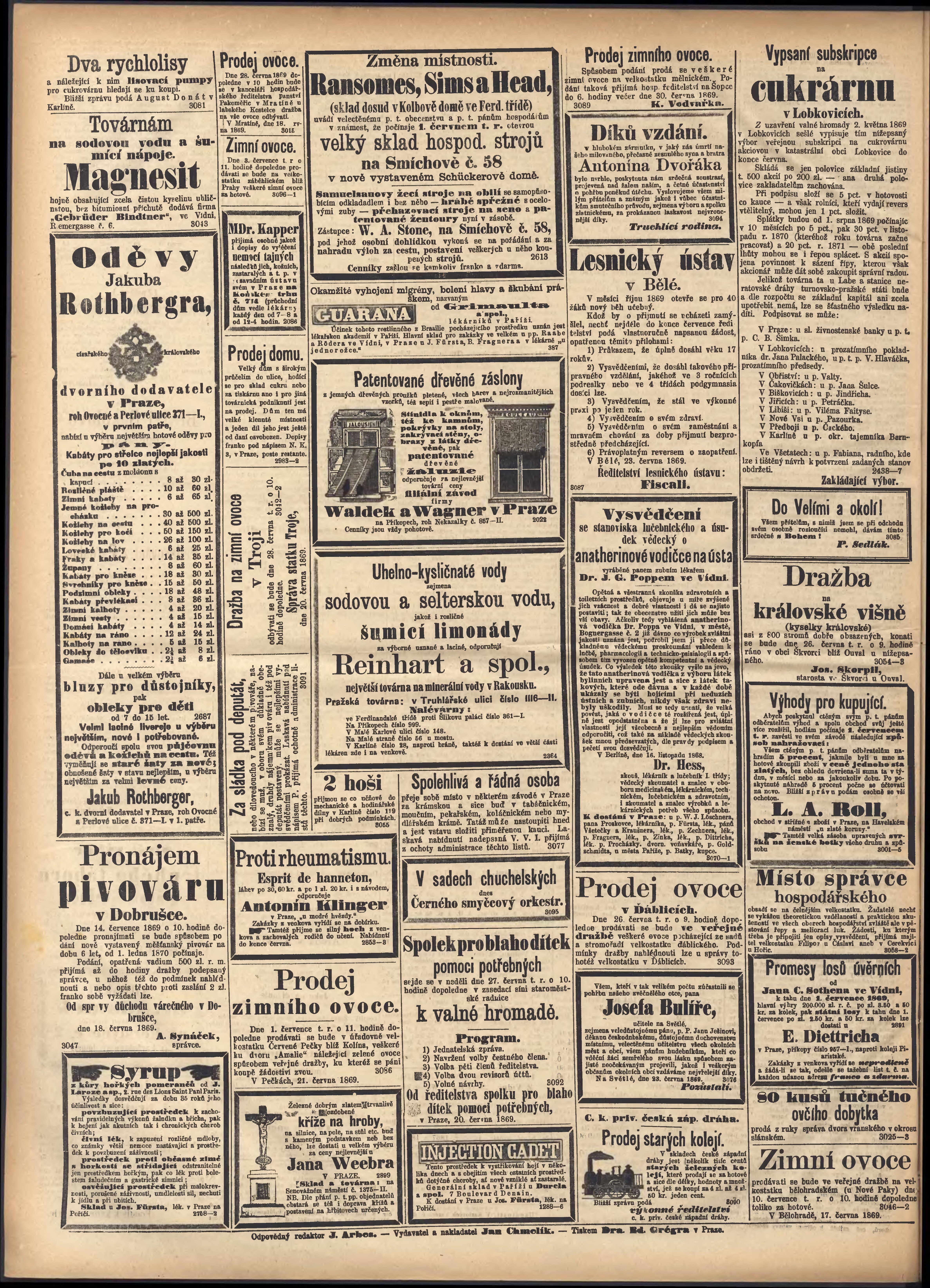 * Datum vydání výtisku: 24.6.1869 Číslo výtisku: 172