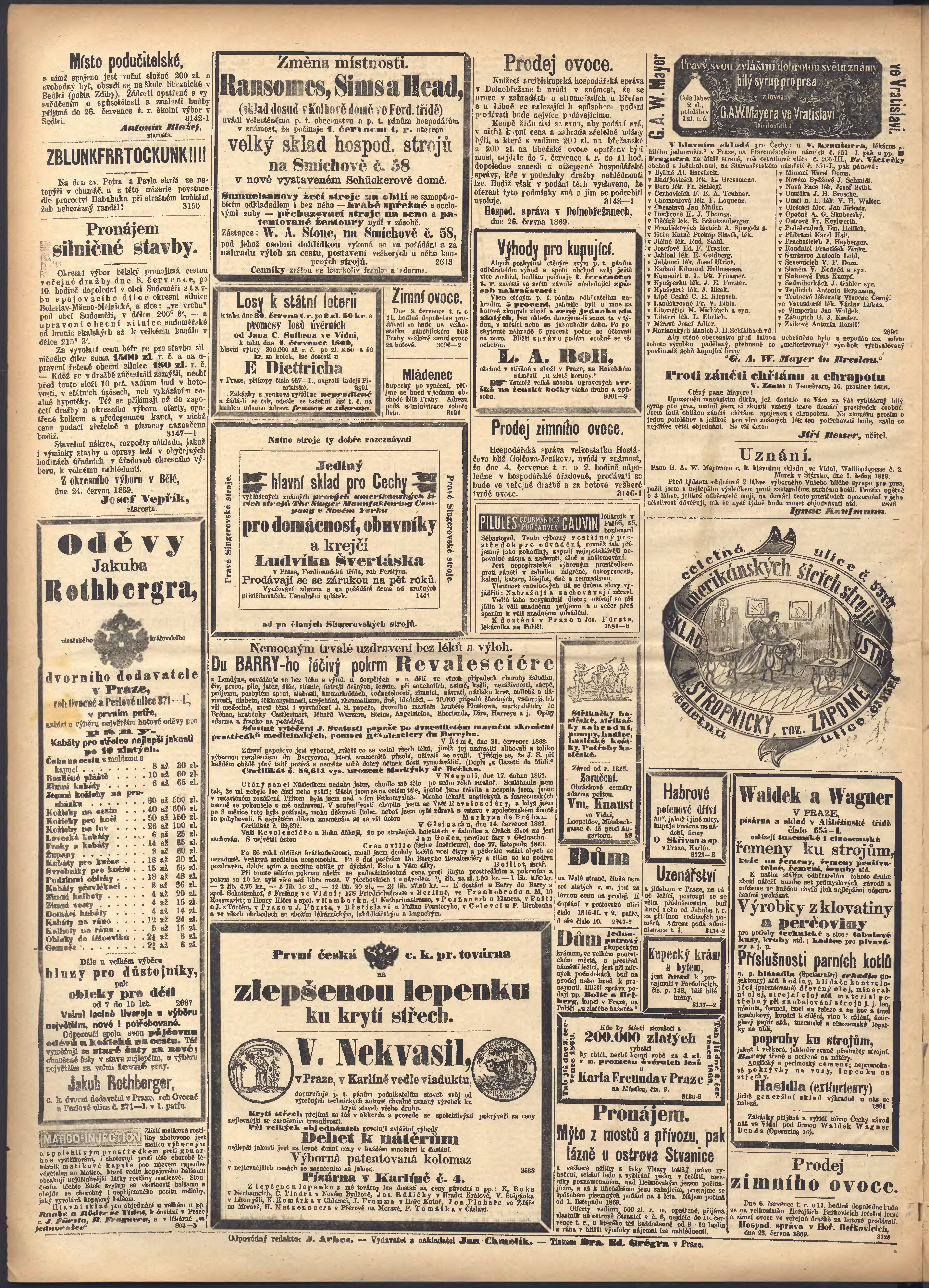 * Datum vydání výtisku: 28.6.1869 Číslo výtisku: 176