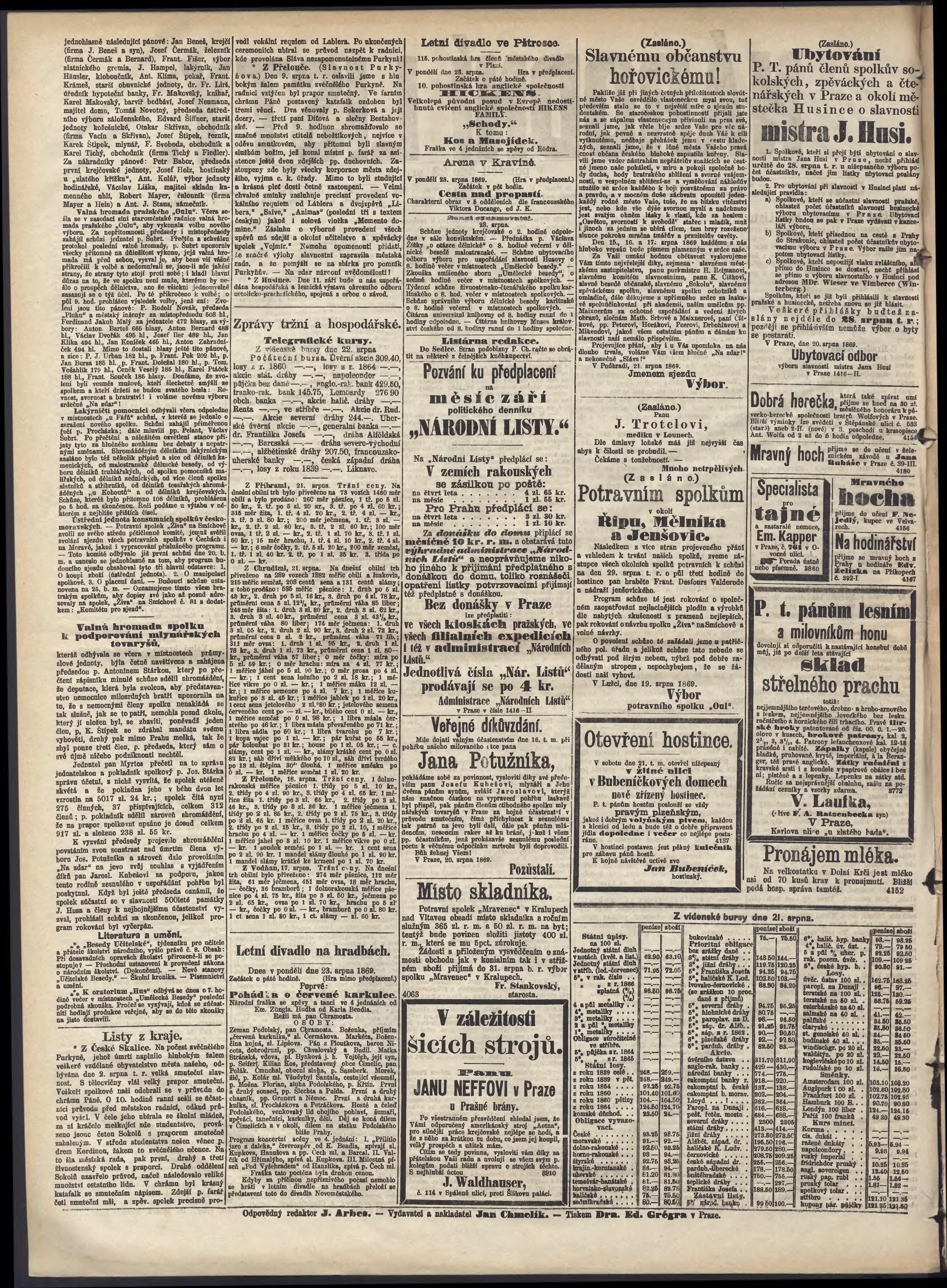 * Datum vydání výtisku: 23.8.1869 Číslo výtisku: 232