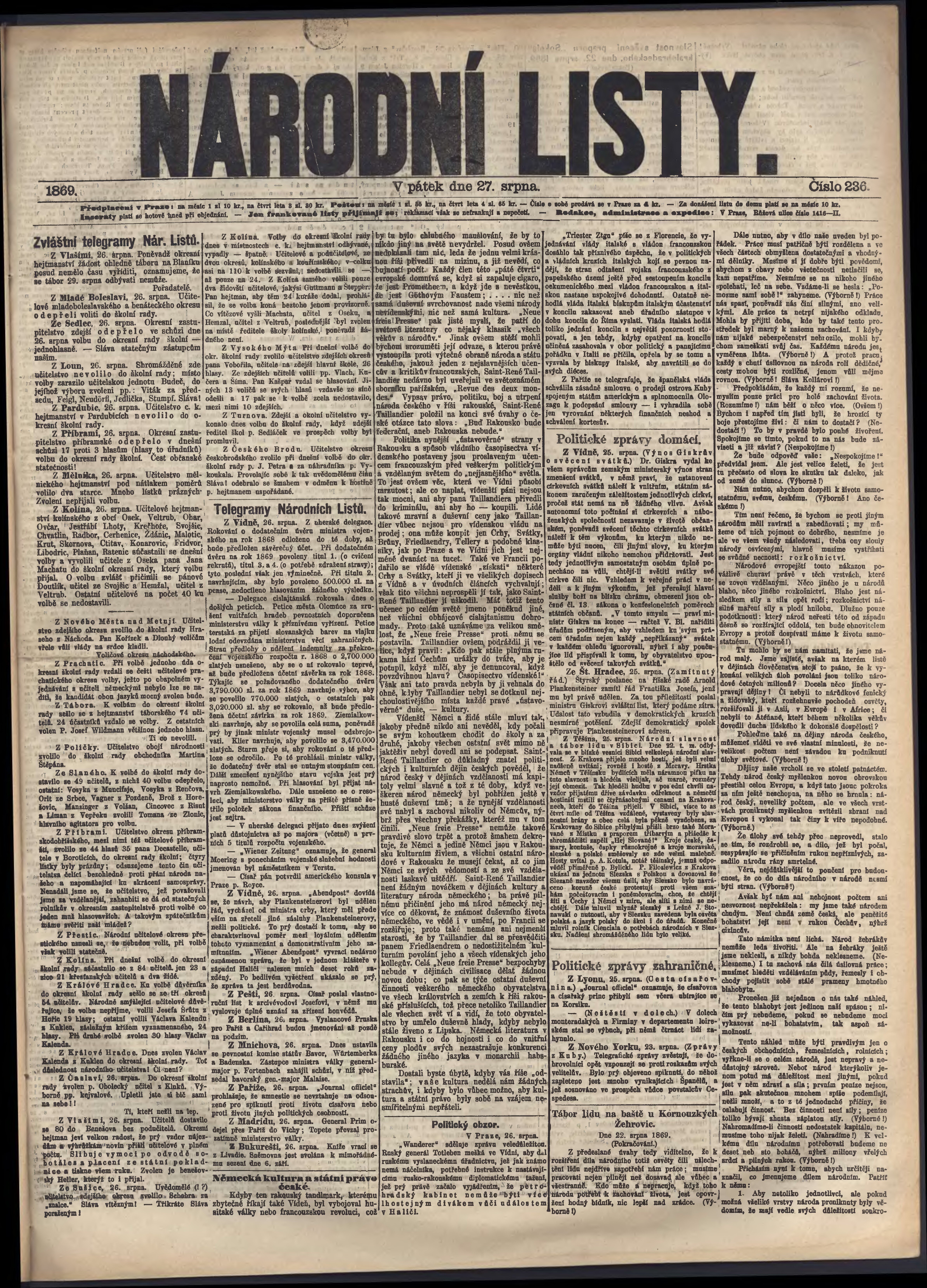 * Datum vydání výtisku: 27.8.1869 Číslo výtisku: 236