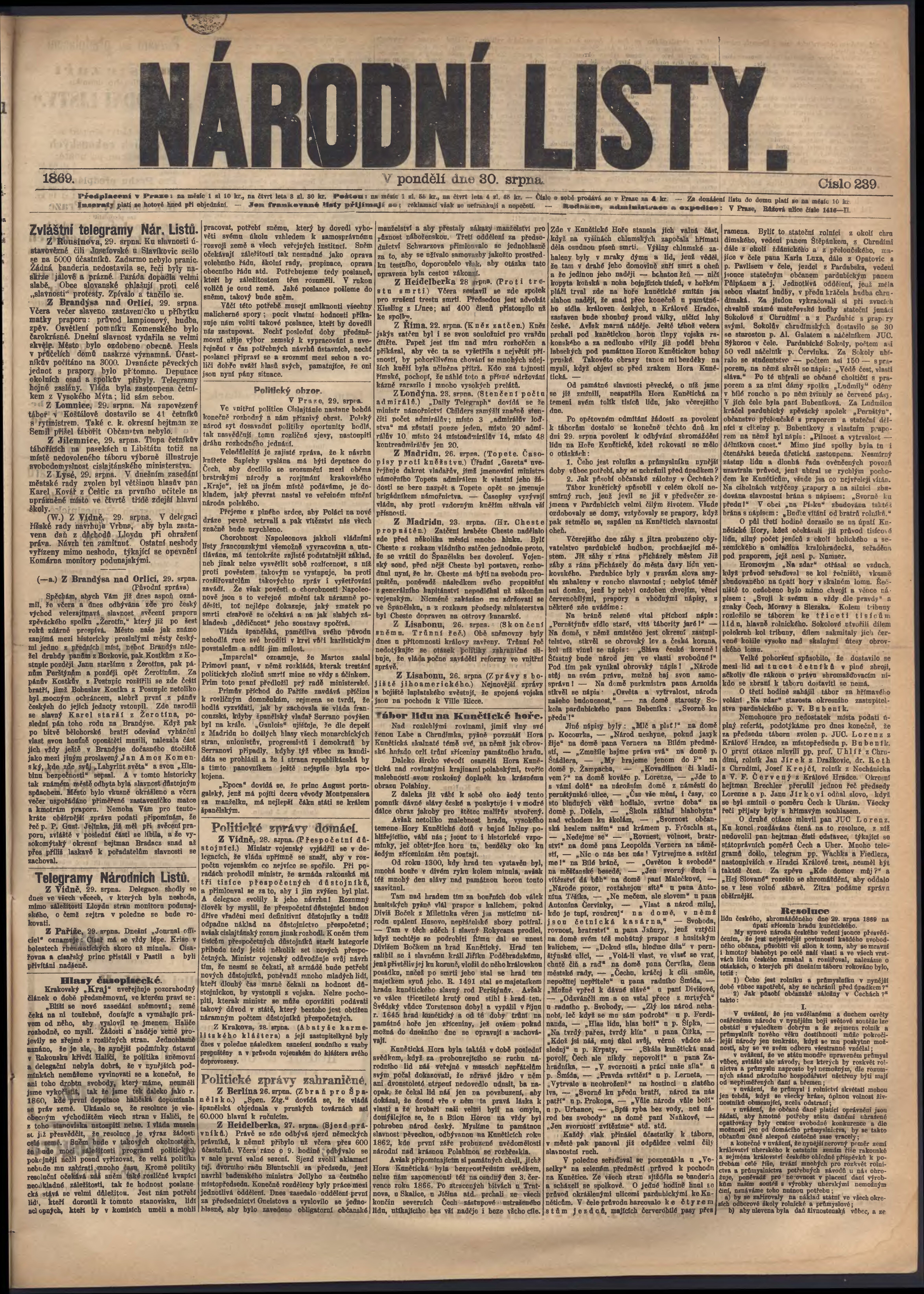 * Datum vydání výtisku: 30.8.1869 Číslo výtisku: 239