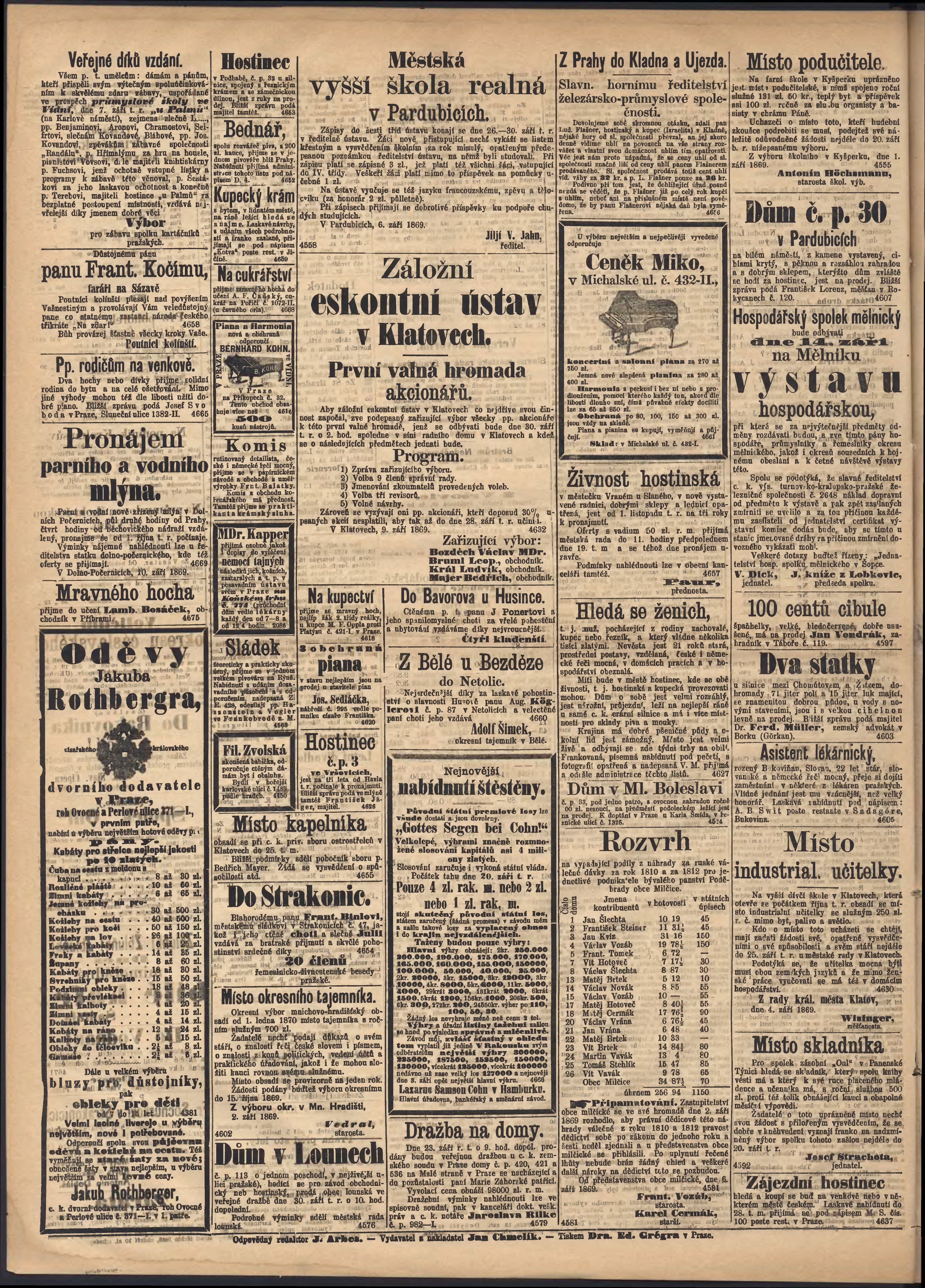 * Datum vydání výtisku: 14.9.1869 Číslo výtisku: 254