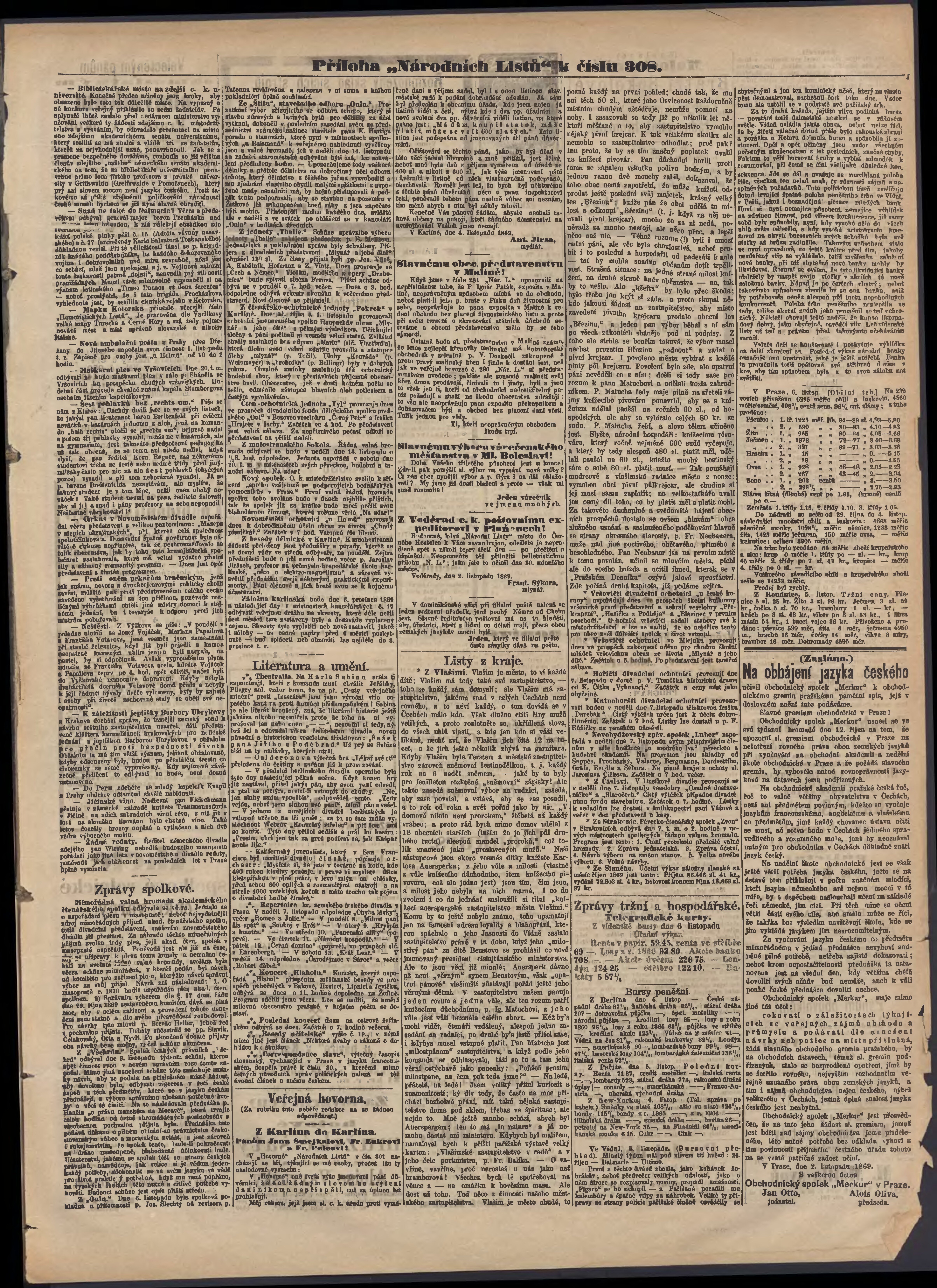 * Datum vydání výtisku: 7.11.1869 Číslo výtisku: 308