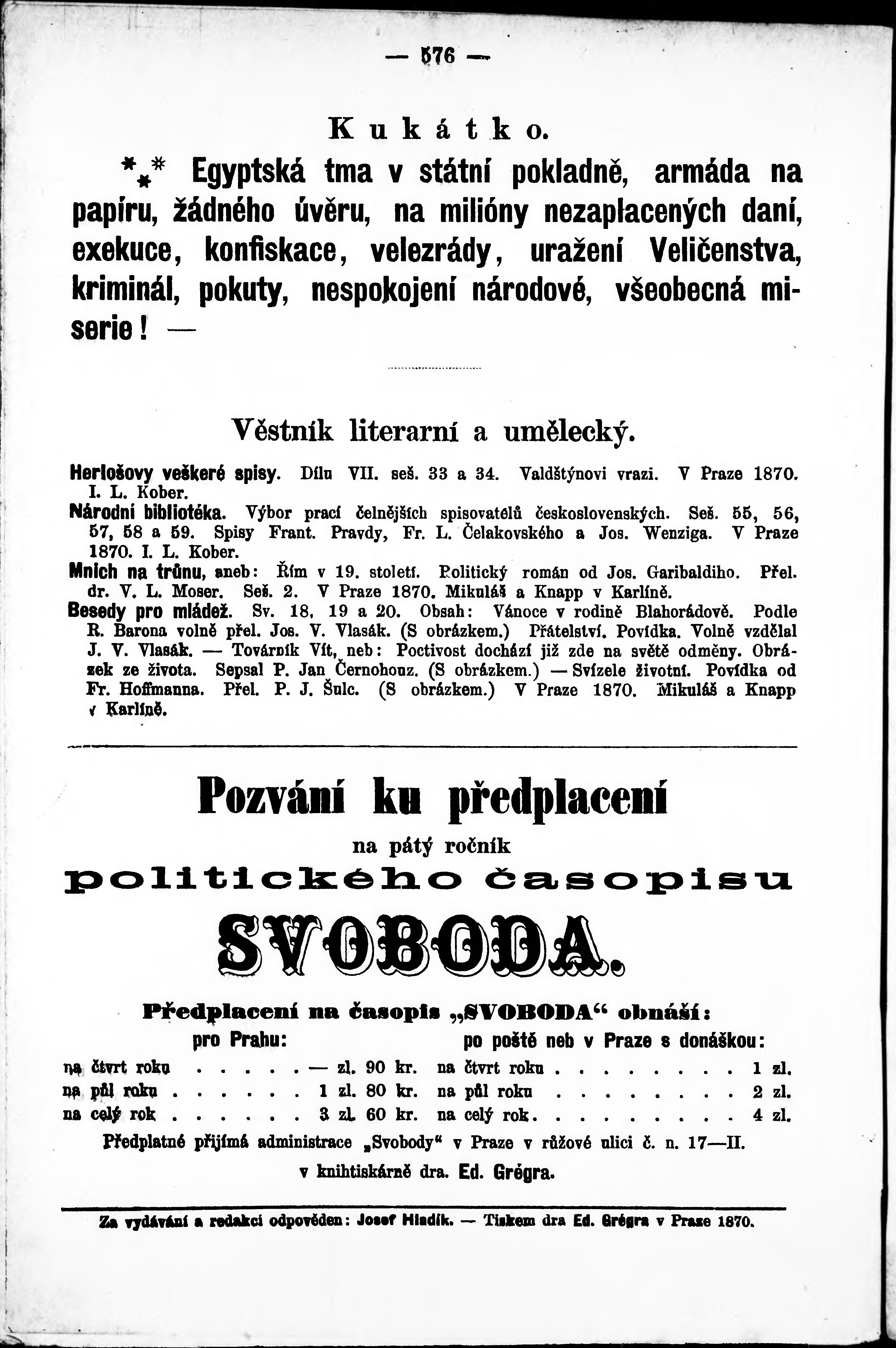 * Datum vydání výtisku: 29.12.1870 Číslo výtisku: 24 Poznámky k výtisku: druhé vydání;